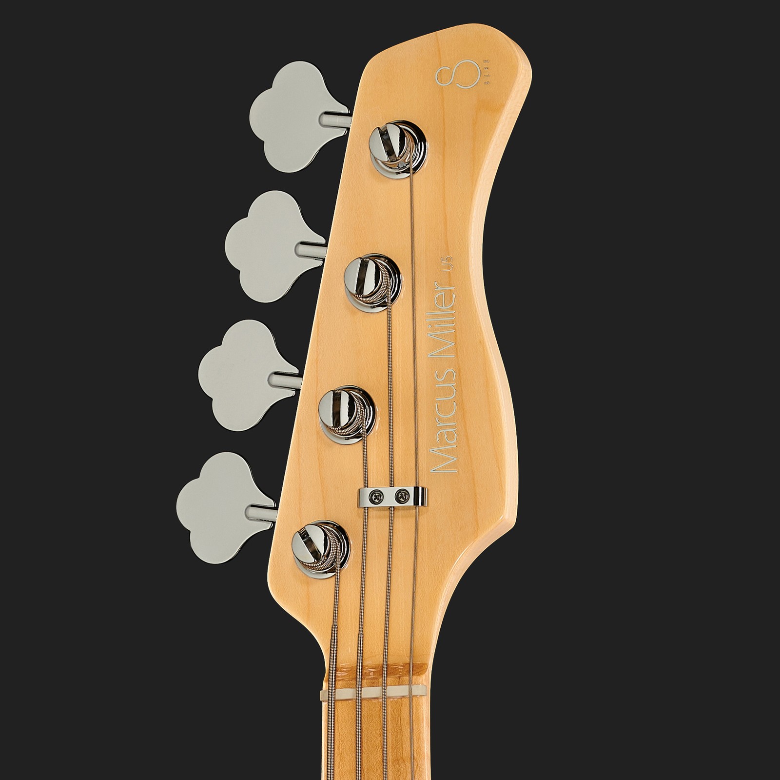 Eine Korpus aus Erle und ein Hals bzw. Griffbrett aus Ahorn sind über Jahrzehnte eine bewährte Holzkombination und kommen daher auch beim Sire U5 zum Einsatz. Der größte Unterschied zu seinen Brüdern V3 bis V10 ist sicher die kürzere Mensur, welche nicht nur der Greifhand entgegenkommt, sondern auch klanglich deutliche Einflüsse hat. Bei den Pickups hat sich Sire entschieden, das „Best Of Both Worlds“ von P- und J-Bass zu vereinen. Die Elektronik ist passiv, jeder Tonabnehmer hat dabei seinen eigenen Volume-Regler und für beide zusammen gibt es eine passive Tonblende. Mit ihr kann man den Sound den eigenen Wünschen anzupassen. Der Marcus Miller U5 ist in den klassischen Finishes Tobacco Burst oder Natur erhältlich. Wer Mut zur Farbe hat, greift zum knalligen Mint inklusive Matching Headstock.