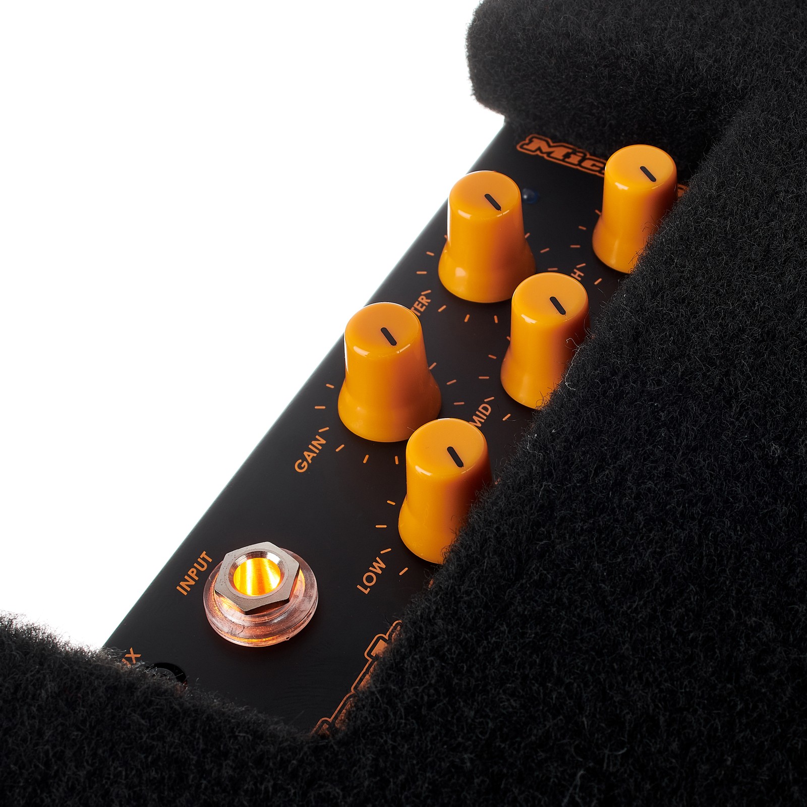 Das Herz des Micro 60 ist ein 10-Zoll-Lautsprecher, welcher von einer analogen Endstufe mit 60 Watt befeuert wird. Zusammen mit der rückseitigen Bassreflexöffnung bietet diese Kombination eine erstaunliche Tiefbasswiedergabe und ordentlich Punch. Der straffe und transparente Grundsound kann mit der 3-Band-Klangregelung schnell und einfach den persönlichen Bedürfnissen angepasst werden. Für die Lautstärke stehen ein Gain- (Vorstufe) und ein Master-Regler (Endstufe) zur Verfügung. An Ein- und Ausgängen gibt es alles, was man benötigt: D.I. Out, Kopfhörer Out, Aux In und die Möglichkeit, eine Zusatzbox anzuschließen. Mit seinen Maßen von 37 x 36,6 x 33,4 cm ist der CMD 101 Micro 60 wirklich kompakt und dank einer Schlaufe an der Oberseite lassen sich seine 11 Kilogramm ganz bequem wie eine Handtasche tragen.