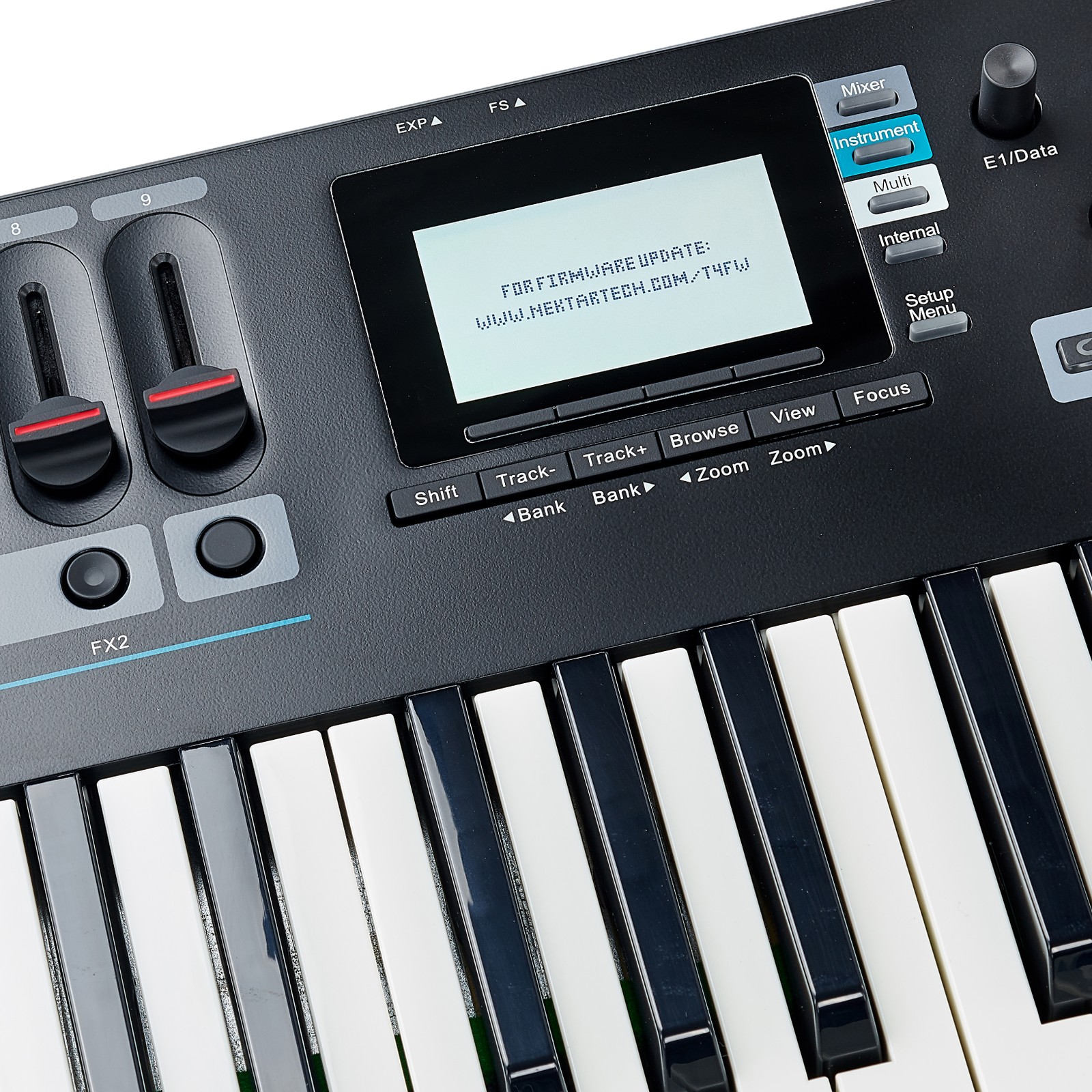 Die anschlagdynamische und mit Aftertouch ausgestattete Keyboardtastatur lässt sich in der Oktavlage umschalten. Ebenso können die Pads eine zweite Bank ansteuern, um den Nutzumfang zu erweitern. Die Bedienelemente lassen sich über die Software Nektarine komfortabel per Drag&Drop zuweisen, was sich in Presets verwalten lässt. Damit ist das Keyboard an unterschiedliche Aufgaben im Handumdrehen angepasst. Die integrierte DAW-Steuerung unterstützt neben den üblichen Play/Stop/Record-Funktionen auch die Aktivierung von Loop, Click, Go To Locator sowie die Umschaltung von Tracks. Die Stromversorgung erfolgt über USB, sodass das Keyboard leicht mit einem Laptop zu einem mobilen Set kombiniert werden kann. Zum Lieferumfang gehört die DAW Bitwig 8-Track, mit der sich kleine Projekte schnell umsetzen lassen.