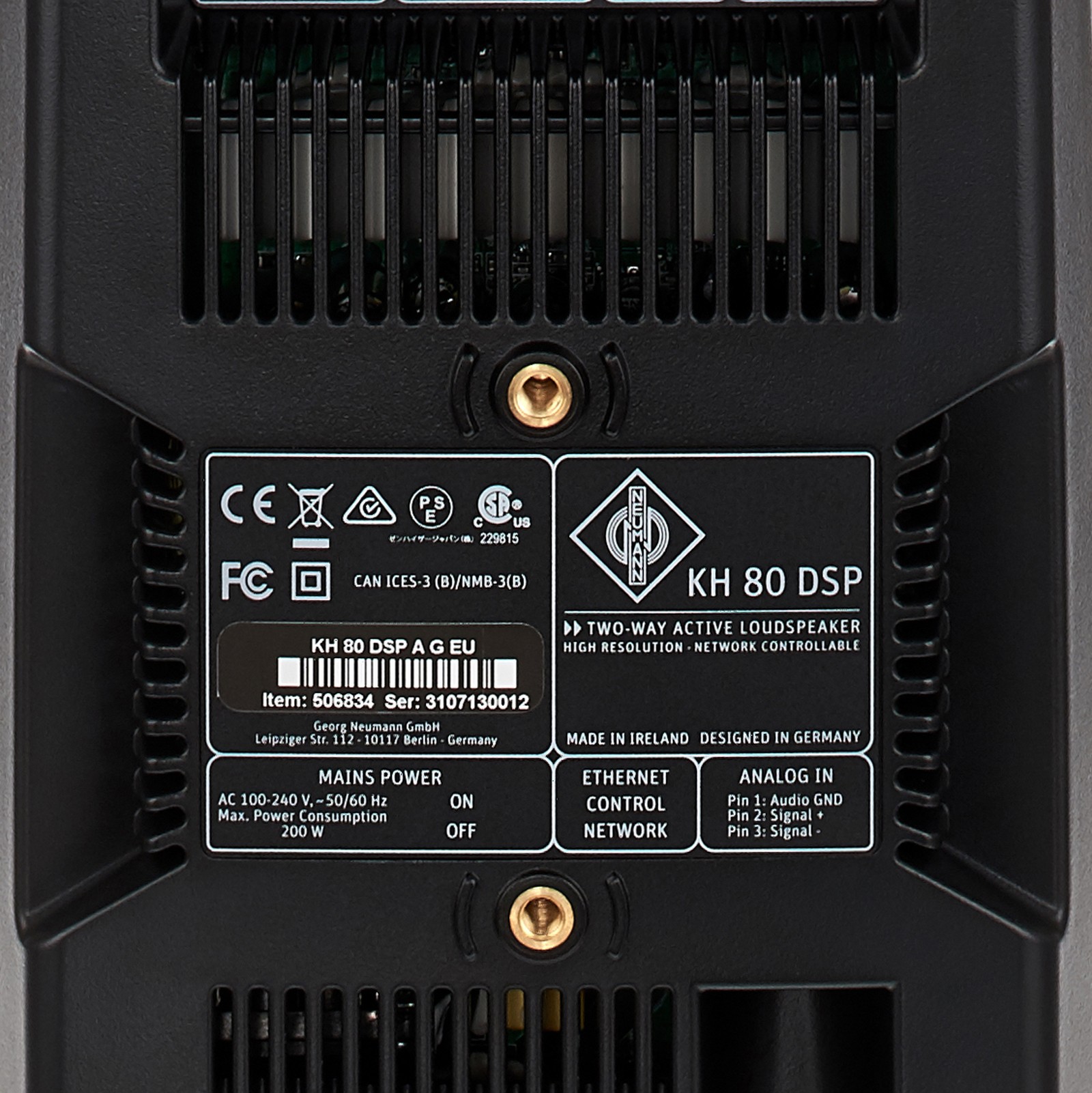 Unter der Haube der KH 80 DSP befinden sich jeweils ein 4"-Tieftöner und ein 1"-Hochtöner. Insgesamt übertragen sie einen Frequenzgang von 57Hz bis 21kHz – und das bei einem maximalen Schalldruck von 108,8dB SPL. Dank modernster Modeling-Techniken geben sie das Signal verzerrungsfrei wieder. Und auch das Äußere trägt einen Teil zum ausgewogenen Klang bei: Die Rundungen des Gehäuses verringern Diffraktionskanten. Der aufwendige Entwicklungsprozess hat dazu geführt, dass die Monitore über eine einzigartige, präzise Schallführung verfügen. Wegen der Schutzmechanismen und Leistungsreserven arbeiten die Studiomonitore selbst bei höchster Belastung noch zuverlässig. Auf der Rückseite verfügen die KH 80 DSP außerdem über Möglichkeiten zur Wandmontage für die Festinstallation.