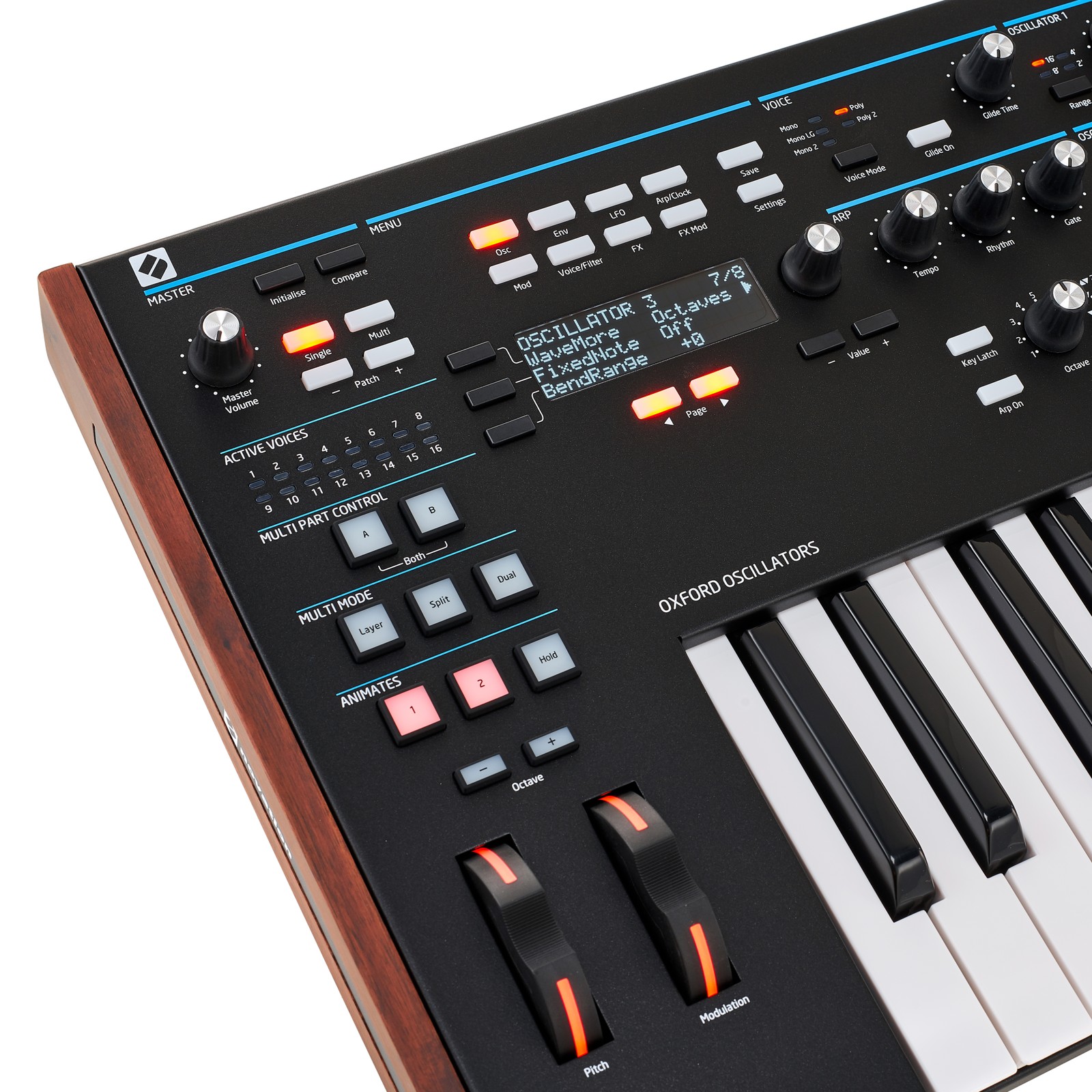 Mit der bi-timbralen Synthese kann der Summit in zwei Synthesizer (A und B) aufgeteilt werden. Die Synthesizer haben je acht Stimmen, sodass insgesamt 16 Stimmen zur Verfügung stehen. Jeder Regler der Bedienoberfläche und jede Menüfunktion kann den jeweiligen Parameter, je nach gewähltem Modus, entweder nur in einem der beiden Synthesizer oder aber in beiden beeinflussen. Wenn der Modus Single Patch ausgewählt ist und ein Regler anschließend bewegt bzw. ein Parameter im Menü eingestellt wird, hat dies Einfluss auf beide Synthesizer. Sie arbeiten sozusagen wie ein Tandem. Wenn hingegen die Funktion Multi Patch aktiviert ist, arbeiten beide Synthesizer unabhängig voneinander. Die Möglichkeit, zwei verschiedene Klänge miteinander zu kombinieren, sorgt für eine stark erweiterte Klangpalette. Jeder Parameter in jedem Synthesizer kann hier unabhängig voneinander eingestellt werden. Mit unterschiedlichen Modi können die Synthesizer unterschiedlich abgehört werden. Hier kann zwischen Layer-, Split- und Dual-Mode gewählt werden.