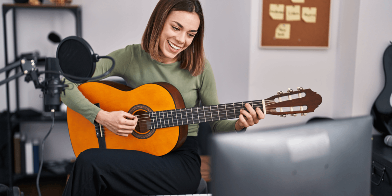 Eine ideale Lösung sind hier Online Musikschulen. Sie bieten teilweise mehrere Hundert Video-Lektionen, bei denen man Lehrer/in genau auf die Finger schauen kann (auch mit Zeitlupe-Funktion) und alle Inhalte leicht verständlich erklärt bekommt. Zugang zu Online-Musikschulen erhält man über die Buchung eines Abonnements, das meist 3, 6 oder 12 Monate Laufzeit hat. Ab da hat man 24/7 sofortigen Zugriff auf sämtliche Inhalte. Auf diese Weise kann man sich neuen Input holen, wann man möchte, wo man möchte und wie viel man möchte. Einfach einloggen und loslegen. Das Angebot von Online Musikschulen umfasst viele unterschiedliche Genres und Spieltechniken, Themen wie Harmonielehre, Improvisation und vieles mehr. Zusätzlich gibt es alles noch einmal in schriftlicher Form (Noten, Tabulatur bzw. TABs) als Download. Sämtliche Lektionen sind zu jeder Zeit abrufbar und in regelmäßigen Abständen kommt neues Material hinzu. Für Rückfragen steht ein Support über E-Mail oder Telefon zur Verfügung. Online Musikschulen sind natürlich auch dann eine sinnvolle Alternative, wenn regional kein passender Unterricht verfügbar ist. Bekannte Anbieter von Online Musikschulen sind z. B. music2me, Skoove oder Tomplay.