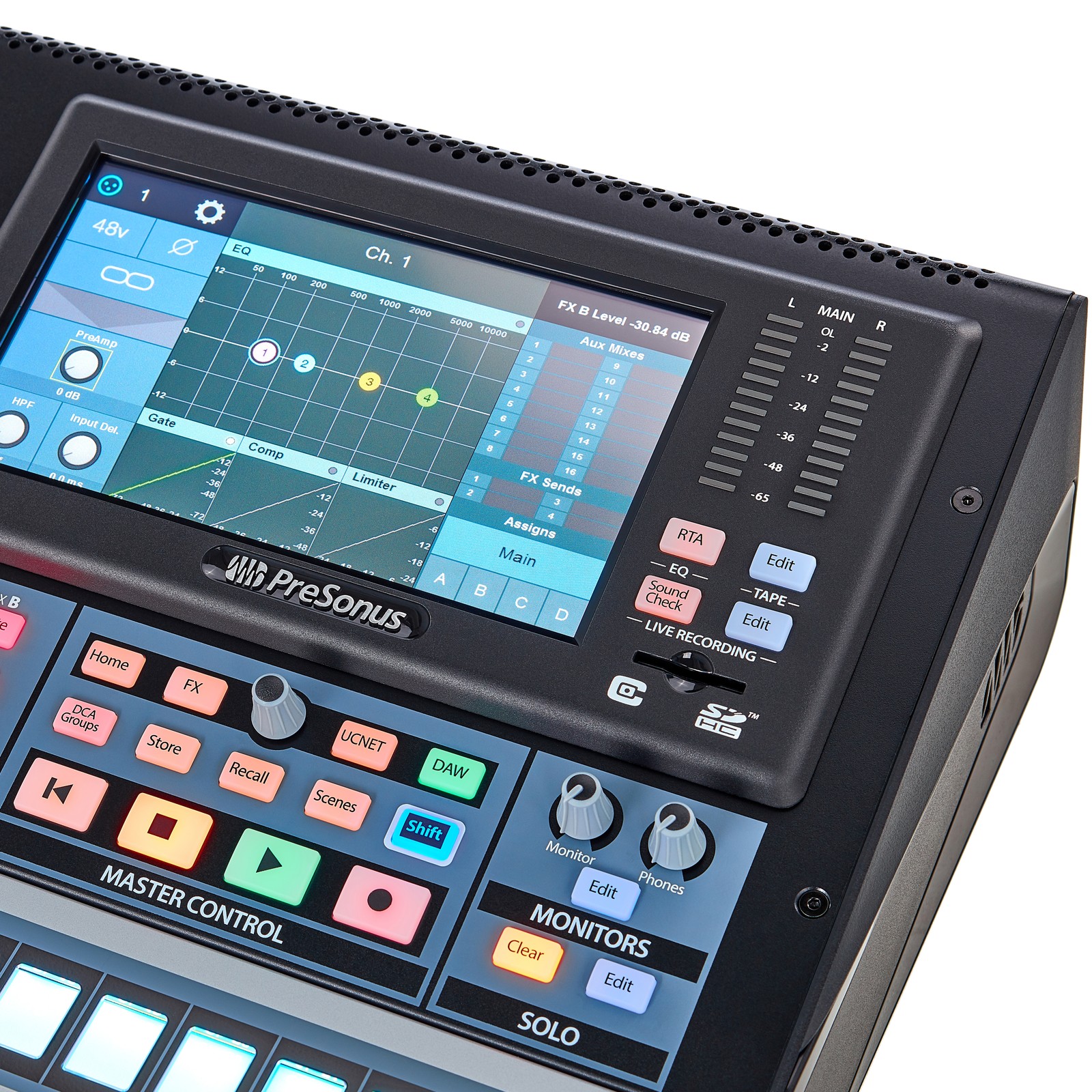 Mit 32 Kanälen und seiner allgemeinen Vielseitigkeit ist das kompakte und verhältnismäßig leichte Presonus StudioLive 32SX hervorragend als Tour- und Proberaum-Mixer für anspruchsvolle Bands, aber auch als festes Pult für größere Clubs und Konzertsäle geeignet. Mit seinem internen 64-in/64-out Audio-Interface und den 25 berührungsempfindlichen Motorfadern ist es als kompaktere Version des StudioLive 32S zudem auch für Produzenten und Studio-Inhaber hochgradig interessant. Im Zusammenspiel mit Presonus Studio One, das in der Artist-Version im Lieferumfang enthalten ist, entsteht ein perfekt abgestimmtes System aus Hard- und Software. Grundsätzlich ist das StudioLive 32SX mit allen erhältlichen DAWs kompatibel.