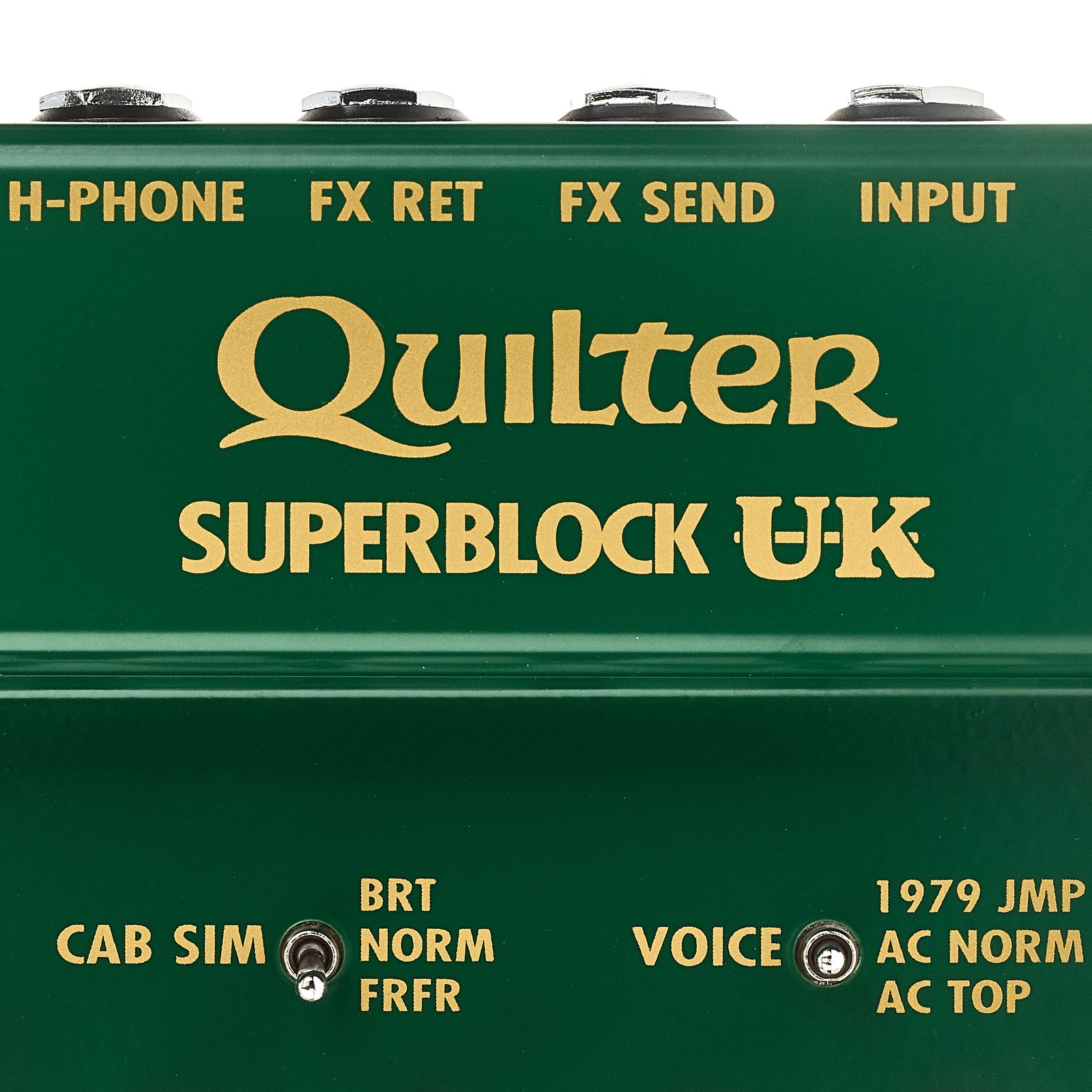 Vor allem für Spieler, die häufig live unterwegs sind und ihr Equipment mit möglichst wenig logistischem Aufwand transportieren möchten, bietet der Quilter Superblock UK mit seinen drei typisch britisch klingenden Grundsounds, dem effektiv zupackenden EQ, der Speaker-Simulation sowie dem integrierten Reverb eine kompakte und zugleich amtlich klingende Lösung. Er ist für verschiedene Einsatzgebiete von warmen Cleansounds bis hin zu kräftigem Overdrive geeignet. Zur Nutzung muss lediglich noch eine Box angeschlossen werden und schon kann der Spaß beginnen. Einen sinnvollen Begleiter stellt der Superblock UK auch beim Recording im Studio dar. Dort spielt die dynamisch agierende Speakersimulation ihre Stärken aus und macht den Einsatz einer Box überflüssig.