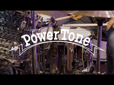 Die Neuauflage der Powertone-Serie bietet die klassischen Features der Originale aus den 1960er Jahren. Alle Modelle kommen mit dreifach geflanschten 2,3mm-Stahlspannreifen und acht Stimmschrauben. Die Beavertail-Spannböckchen wurden ihren historischen Vorbildern detailgetreu nachempfunden, und auch bei der weich laufenden Clock-Face-Abhebung handelt es sich um eine exakte Reproduktion des Originals. Allerdings wird die Hardware durch einige kleinere, zeitgemäße Features modernisiert. So sind die Stimmschrauben mit Nylonplättchen und die Spannböckchen mit einer Gummischicht unterlegt. Die Halterung für den Snareteppich lässt sich dank Vierkantschrauben ganz einfach mit einem Stimmschlüssel lösen – so wie es sich für eine aktuelle Snare gehört.