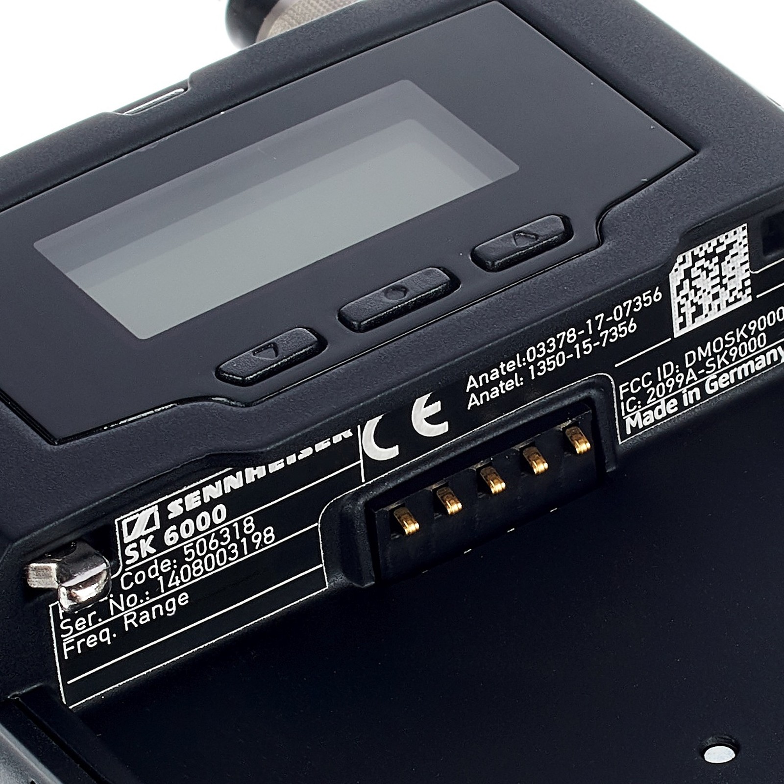 Durch das intermodulationsfreie Sendekonzept wird der leistungsstarke Betrieb im äquidistanten Frequenzraster ermöglicht. Das führt zu einer enormen Spektraleffizienz für maximale Kanaldichte und überragende Sendeleistung. Der SK 6000 B1-B4 arbeitet dabei im Frequenzbereich zwischen 630MHz und 718MHz, was einer Schaltbandbreite von 88MHz entspricht. Als Codierung kommen die AES-256-und Digital-9000-Verschlüsselung zum Einsatz. Im Link-Density-Mode (LD) mit effizientem Audio-Codec (SePAC) sind außerdem bis zu fünf Kanäle pro MHz Bandbreite möglich. Ferner gewährleistet der optionale Lithium-Ionen-Akku BA 61 eine Betriebszeit von bis zu 6,5 Stunden. Wahlweise kann der Taschensender auch mit dem Batterieset B 61 betrieben werden.