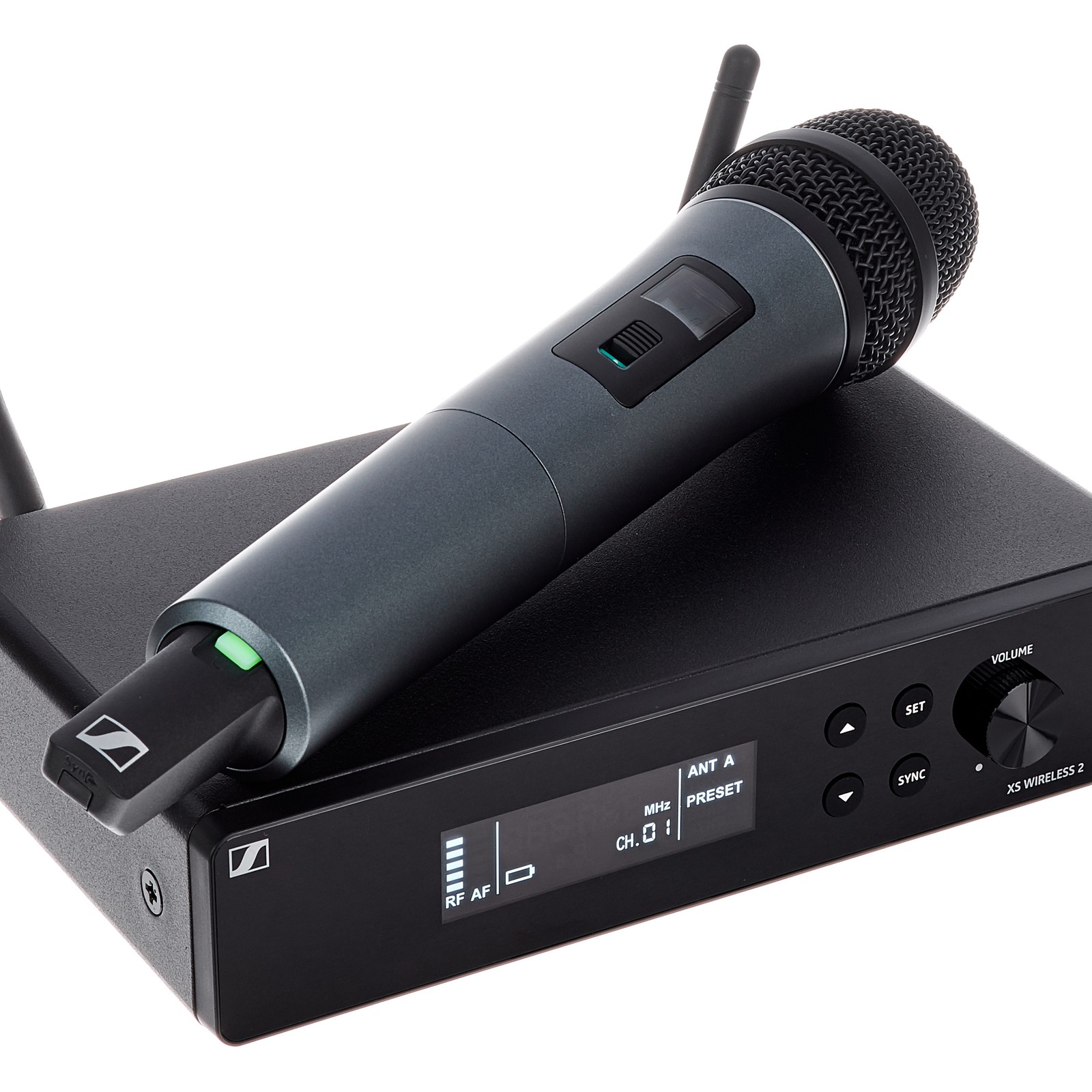 Das XSW 2-835 B-Band Vocal Set ist eine professionelle Funkstrecke für Moderatoren, Comedians und Sänger mit druckvoller Stimme, die ohne Genehmigungsverfahren ihr System gleich in Betrieb nehmen möchten. Betreiber einer Multifunktionsbühne können den Handsender für Diskussionsrunden, Anmoderationen und Gesang einsetzen. Wer mehrere Sendestrecken benötigt, profitiert davon, dass maximal 12 XSW 2-Einheiten gleichzeitig genutzt werden können. Die hochwertige Ausstattung in bewährter Sennheiser-Qualität steht für Langlebigkeit. Man erkennt sie nicht zuletzt an vermeintlichen Kleinigkeiten wie einer Zugentlastung für das Netzkabel. Der Empfänger ist in ein robustes Metallgehäuse eingebaut. Dank True Diversity schaltet er automatisch auf das jeweils beste Antennensignal um.