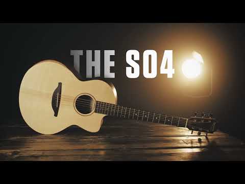 Die Decke einer akustischen Gitarre spielt eine maßgebliche Rolle für den Klang und die Tonentfaltung. Bei der S04 wurde eine massive Sitka-Fichtendecke verwendet und auf einen Korpus aus intensiv gemasertem Walnussholz aufgeleimt. Diese Holzkombination sorgt sowohl für eine überraschend hohe Lautstärke als auch für einen vollen und brillanten Klang, der mit reichlich Obertönen garniert ist. Der schlanke Mahagonihals verfügt über ein Griffbrett aus Ebenholz, das mit 20 sorgfältig eingesetzten Bundstäbchen bestückt wurde. Ein 43,5mm breiter Graph Tech Tusq-Sattel führt die Saiten zu den sechs verchromten Mechaniken an der Kopfplatte. Von Graph Tech stammt auch die Einlage im Ebenholzsteg, der zusammen mit der abgeschrägten Zarge des Korpus (Soundbox Bevel) dem rechten Arm eine bequeme Auflage ermöglicht. Fast unsichtbar am inneren Rand des Schalllochs wurden die Regler für das L.R. Baggs Element Active System angebracht.