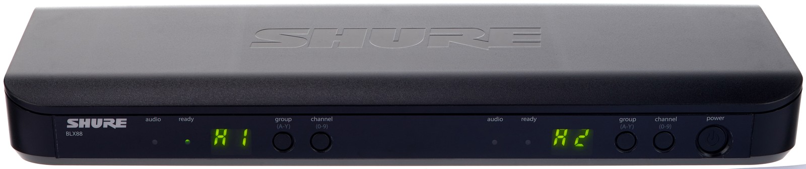 Die Dualfunkstrecke BLX1288/PGA31 von Shure kann sowohl mobil als auch fest installiert genutzt werden. Auch für Präsentationen und Auftritte an wechselnden Orten sind die Sendestrecken gemacht, zumal sie ohne Erlaubnis betrieben werden dürfen. Die Handfunke kann bei Bedarf schnell für Fragen ins Publikum gereicht werden. Wer’s mag, verwendet für den Handsender optional erhältliche farbige Gehäuse oder Markierungsaufsätze. Der Empfänger bietet sowohl zwei XLR- als auch zwei 6,35 mm-Klinkenausgänge. Bei einer Sendeleistung von 10 mW und einer maximalen Reichweite von 91 Metern dürfen die Sprecher mit ihren Sendern ruhig auf der gegenüberliegenden Seite des Raumes stehen. Dank der übersichtlichen Features ist das Set für Einsteiger in die Drahtlostechnik leicht zu bedienen. Bei Anlieferung sind übrigens beide Funkstrecken schon auf unterschiedliche Frequenzen programmiert und damit gleich einsatzbereit.