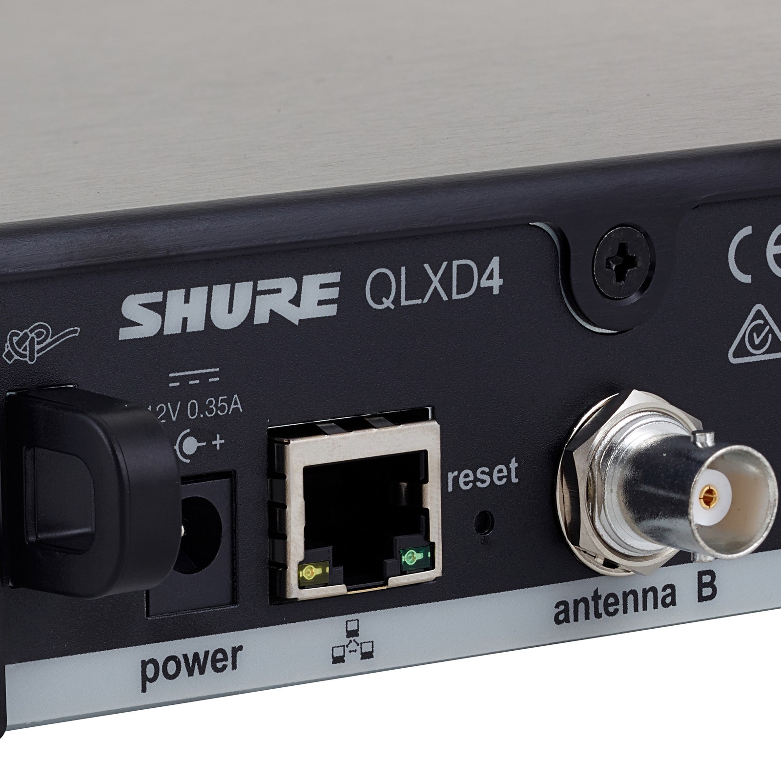 Der Receiver QLXD4 S50 ist ein Empfänger für den professionellen Einsatz. Verleiher und Betreiber großer Veranstaltungsstätten wie Theater, Musicals und Stadthallen werden die vielfältigen Steuerungsmöglichkeiten zu schätzen wissen. Mit der Vielzahl gleichzeitig nutzbarer Kanäle ist er für den Einsatz in TV-Shows prädestiniert, in denen in schnellem Wechsel viele Funkstrecken verwendet werden. Beim Einsatz an häufig wechselnden Orten bietet das automatische Frequenzmanagement Arbeitserleichterung. Zur Frequenzkoordination am PC oder Mac dient die Software Shure Wireless Workbench®. Auch in AMX- und Crestron-Systeme kann der Empfänger eingebunden werden. Für mobile Endgeräte steht die iOS-App ShurePlus™ Channels zur Verfügung. Die Sendeleistung ist umschaltbar von 1 auf 10 mW. Die Reichweite kann bis zu 100 Meter betragen.