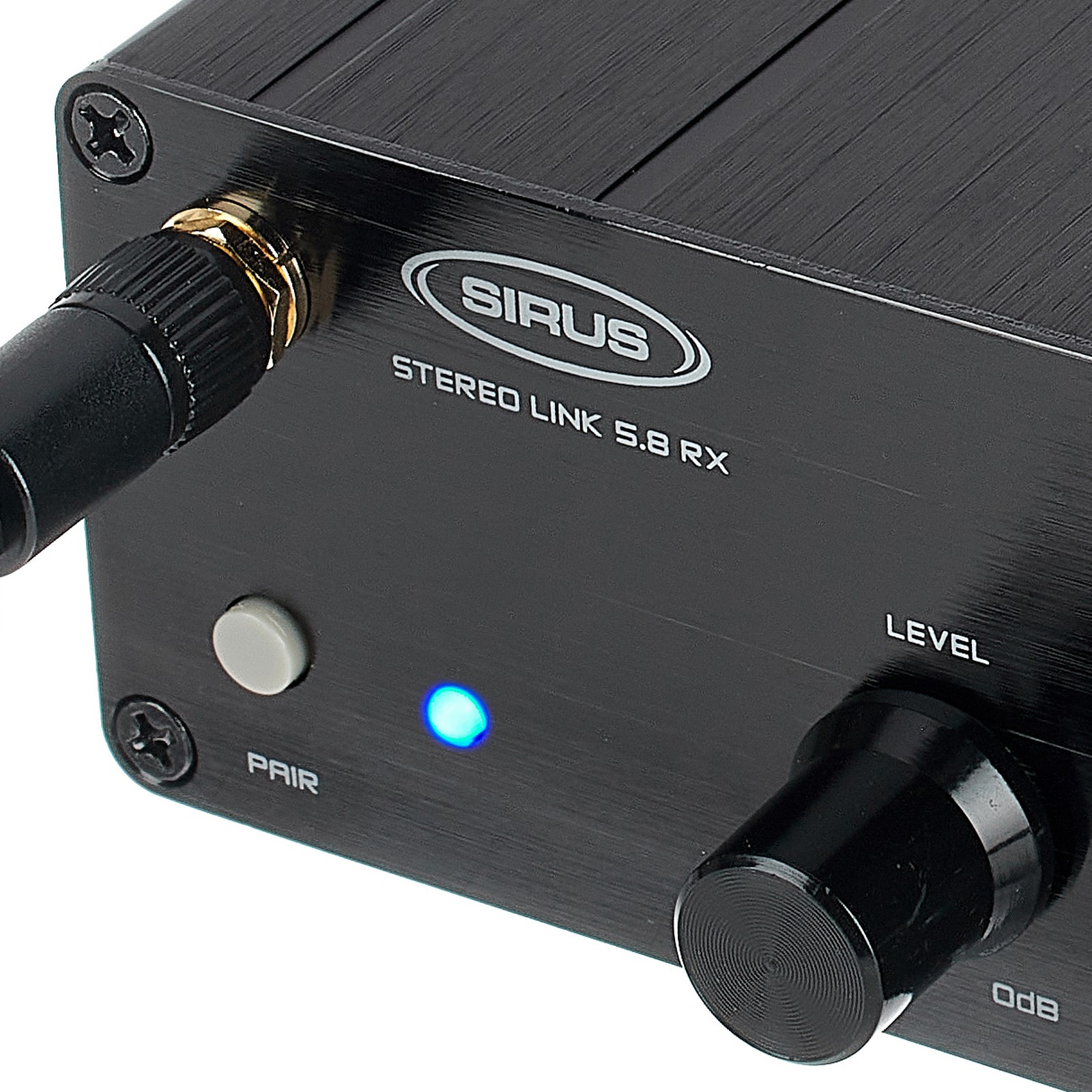Wer das Tonsignal kabellos zu seinem Sirus Reflect Install oder Store Bundle oder einer Aktivbox schicken möchte, vermeidet aufwändig über Arbeits- und Fluchtwege verlegte Kabel mit dem genehmigungsfrei funkenden Sirus Stereo Link 5.8 Bundle. Verwendet man mehrere Empfänger, erhalten sogar mehrere Verstärker oder Boxen den Sound. Das Bundle funkt im 5,8-GHz-Bereich mit einer Latenz von weniger als 17ms, wobei der Abstand zwischen Sender und Empfänger maximal 30 Meter mit Sichtkontakt betragen darf. Die Eingänge des Senders, an welche die Signalquelle angeschlossen wird, und die Ausgänge des Empfängers, die zu Amp oder Aktivboxen führen, sind als symmetrische XLR- und alternativ als unsymmetrische 6,3mm-Klinkenbuchsen ausgeführt. Praktischerweise hat der Sender einen eingebauten Levelpoti, sodass zum Anpassen der Lautstärke kein Gang zum Verstärker erforderlich ist.