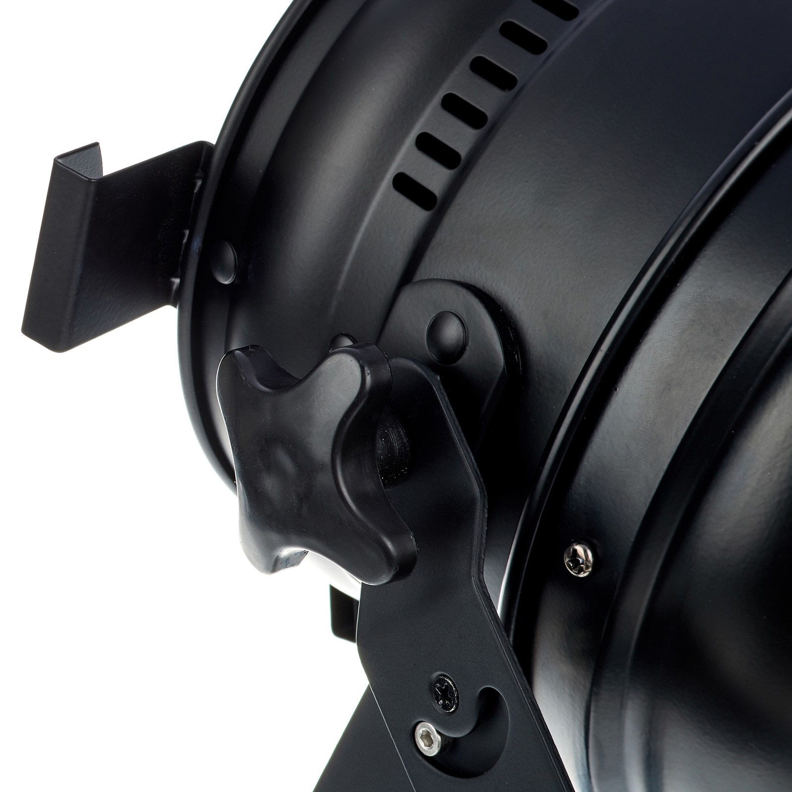 Der Retro Flat Par 18x10W RGBWA UV von Stairville ist ein Allrounder im klassischen Look einer Par-Kanne. Betreiber von Konzertbühnen und multifunktionalen Veranstaltungsstätten erhalten damit einen Dekostrahler mit vielfältigen Einsatzmöglichkeiten. In mittelgroßen Clubs und Locations kann der Spot seine Stärken am besten ausspielen. Mit dem UV-Licht erhalten Betreiber von Theaterbühnen sowie Diskothekenbesitzer einen zusätzlichen Spezialeffekt. Der enge Lichtstrahl ermöglicht gezielte Einsätze an Backdrop oder Portal. Dank des Power Outs spart man dabei sogar noch Mehrfachsteckdosen, während Verleiher beim Transport vom geringen Gewicht des Retro Flat Par 18x10W RGBWA UV profitieren. Und ist z. B. für einen Videodreh mal eine besondere Farbe gefragt, kommt die Aufnahme für einen Par-64-Farbfilterrahmen zum Einsatz.
