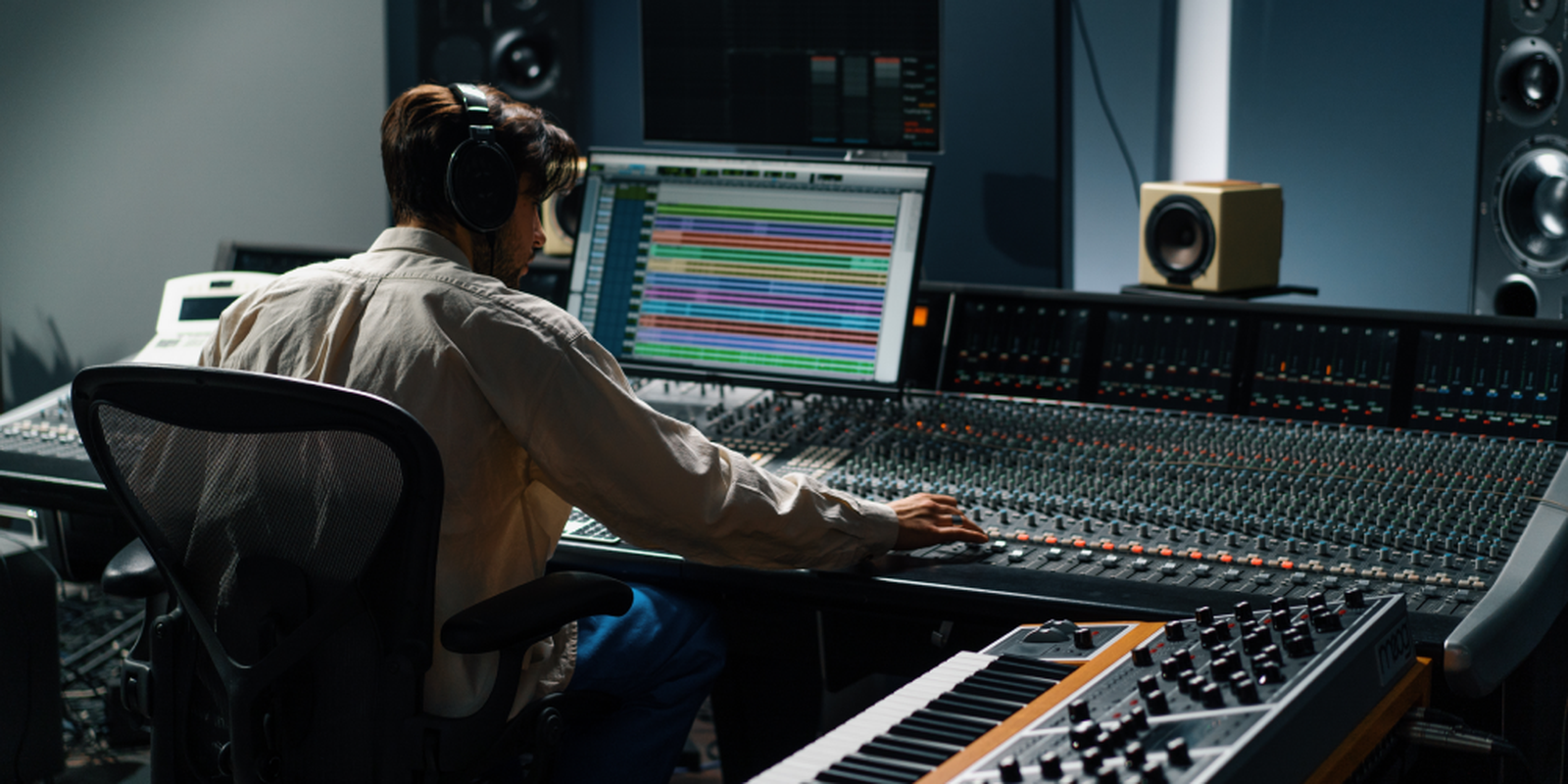 Abhörmonitore sind die Lautsprecher im Studio, mit denen du deine Arbeit kontrollierst. Deshalb spielt der Klang der Lautsprecher bei der Suche nach den passenden Abhörmonitoren eine wichtige Rolle. Gut klingende Monitore gibt es schon für kleines Geld, professionelle Studiolautsprecher liegen preislich meist im dreistelligen Bereich. Unverzichtbar für die Arbeit im Studio sind Kopfhörer. Beim Kauf eines Studiokopfhörers solltest du neben dem Tragekomfort vor allem auf seinen Klang achten, denn mit ihm kontrollierst und analysierst du das Audiosignal. Separate Kopfhörerverstärker sind auf die Anforderungen im Tonstudio abgestimmt und bieten häufig mehrere Ausgänge, zum Beispiel für Aufnahmen mit der ganzen Band.