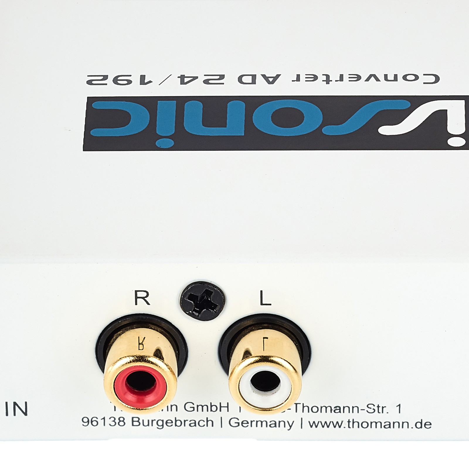 Das zu wandelnde analoge Signal nimmt der Swissonic Converter AD 24/192 an einem Stereo-Cinch-Eingang mit einem fixen Inputlevel neben dem Netzanschluss entgegen, um es an der S/PDIF-Schnittstelle auf der gegenüberliegenden Seite des weißen Gehäuses entweder an einer koaxialen Cinch-Buchse oder am optischen Toslink-Eingang wieder abzugeben. Dazu verbindet man zuerst den Stereo-Output der analogen Audioquelle mit einem passenden Kabel mit dem Converter-Eingang. Daraufhin wird das empfangende Gerät an einen der beiden digitalen Ausgänge angeschlossen. Zuletzt versorgt man die Box noch mit Strom, was durch eine blau leuchtende Poweranzeige bestätigt wird. Der Wandler hat eine maximale Auflösung von 24bit und eine Abtastrate von 192kHz.