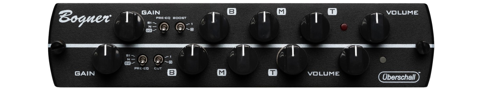 Dieses Synergy-Vorstufenmodul bietet zwei üppig ausgestattete Kanäle, die die Vorstufe des Bogner Überschall/Twin Jet abbilden – konzipiert von Reinhold Bogner selbst. Beide Kanäle haben High-Gain-Kapazitäten mit individuellen Gain- und Pegelreglern sowie eigenen dreibandigen Equalizern sowie ergänzenden Voicing-Schaltern. Klanglich liefert der Überschall ein charakteristisches, ausgewogen verzerrtes, breites und dennoch konturiertes Klangbild. Insbesondere durch die Abstimmung zwischen den beachtlichen Bassreserven und der gleichzeitig verfügbaren Definition ist der Überschall bis heute beliebt, zumal auch das Spielgefühl ausgesprochen gefällig ist.