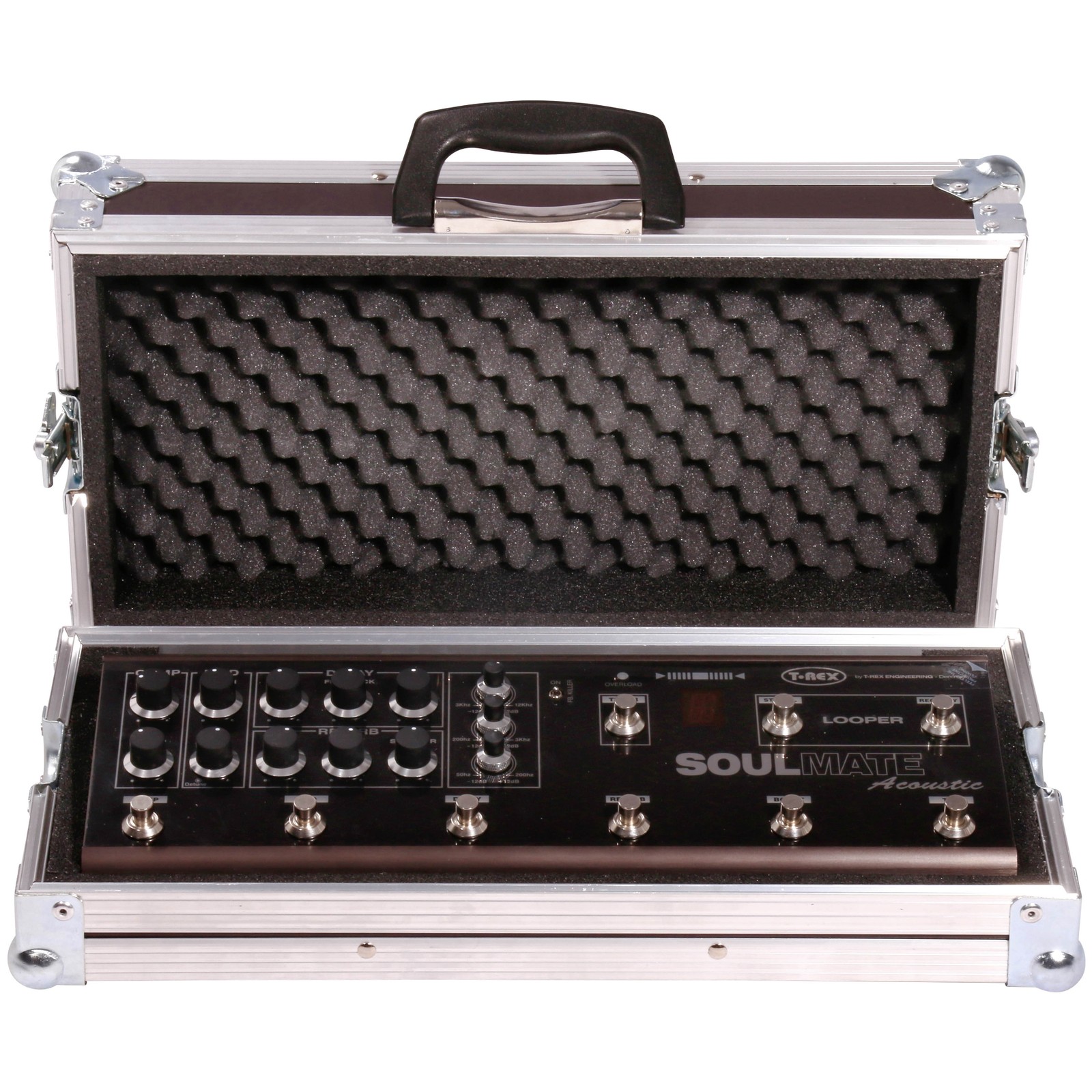 Feedbackunterdrückung, Stimmgerät und Boostfunktion: alles Features, die einem Live-Musiker gerade recht kommen. Daher wird man den T-Rex Soulmate Acoustic primär auf der Bühne finden. Mit dem Looper lassen sich beeindruckende Rhythmen oder komplexe Strukturen aufbauen, die dank der fünf Minuten Aufnahmezeit auch mal etwas länger sein dürfen. Die beiden XLR-Ausgangsbuchsen weisen zudem darauf hin, dass das Gerät in einem gehobenen Umfeld mit einer PA gut aufgehoben ist - was natürlich nicht ausschließt, dass es auch mit einem einzelnen Akustikamp Herausragendes leistet! Das Haubencase ist solide gefertigt und der Soulmate kann direkt im Unterteil des Cases genutzt werden, nachdem die Haube einfach abgenommen wurde.