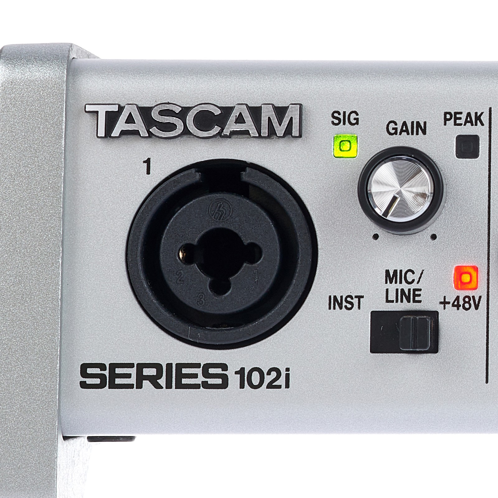 Die 48-Volt-Phantomspeisung zum Anschluss hochwertiger Studiomikrofone an die Mikrovorverstärker mit geringem Eigenrauschen kann für jeden der beiden Eingänge separat geschaltet werden. Ebenso kann hier eingestellt werden, ob es sich um ein Line- oder ein Hi-Z-Signal (also E-Gitarre oder Bass) handelt. Das Tascam Series 102i unterstützt Abtastraten bis 192 kHZ bei 24 Bit Auflösung, der Digitaleingang das S/MUX-Format: Das bedeutet acht Eingänge bis 48 kHz, vier bis 96 kHz und zwei bis 192 kHz. Der Monitor-Mix-Regler bestimmt das Verhältnis zwischen den Signalen der externen Geräte und dem vom Computer kommenden Audio beim latenzfreien Direct Monitoring.