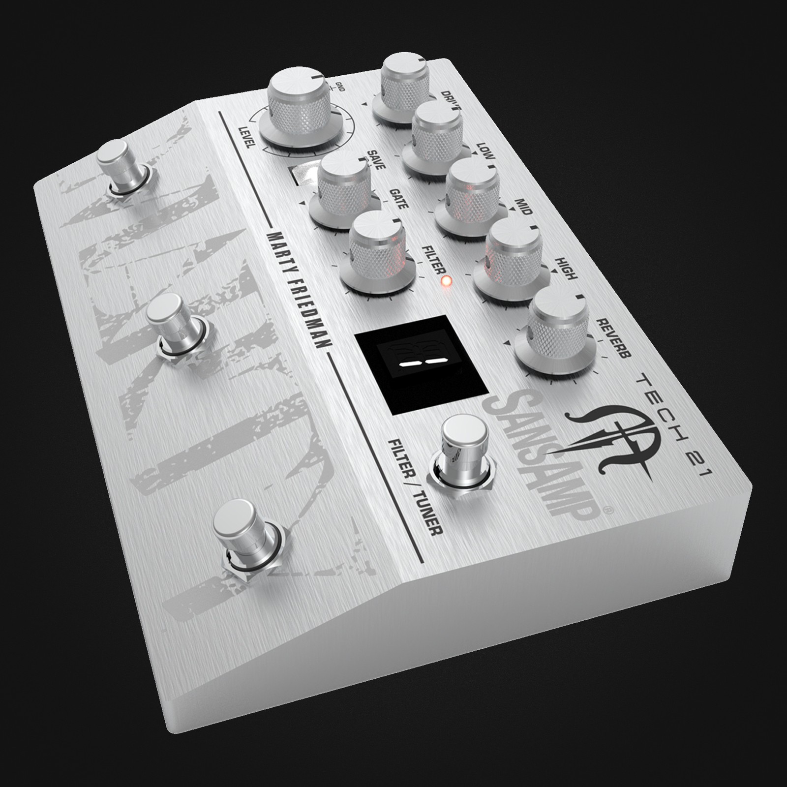 Der US-Amerikaner Marty Friedman zählt zweifellos zu den ganz großen Musikern der Metal-Szene. Sein unverkennbarer Stil beeinflusst seit Jahrzehnten Gitarristen weltweit und mit seinen zahlreichen Veröffentlichungen beweist der mittlerweile in Japan lebende Friedman immer wieder aufs Neue seine ungebändigte Kreativität an den sechs Saiten. Der Tech 21 SansAmp Marty Friedman entstand aus der Zusammenarbeit zwischen dem Künstler und den Effektspezialisten aus New York City. Das analog aufgebaute Pedal bietet drei Preamp-Sounds (Clean, Dirty und Lead) sowie einen Hall und ein Noise Gate; eigene Kreationen können in bis zu 128 Speicherplätzen gesichert werden. Als Anschlüsse steht neben einem Klinkeneingang, einem MIDI-In, FX-Loop sowie einem Klinkenausgang ein symmetrischer XLR-Ausgang bereit, mit dem das Signal direkt in einen Mixer oder ein Interface eingespeist werden kann.