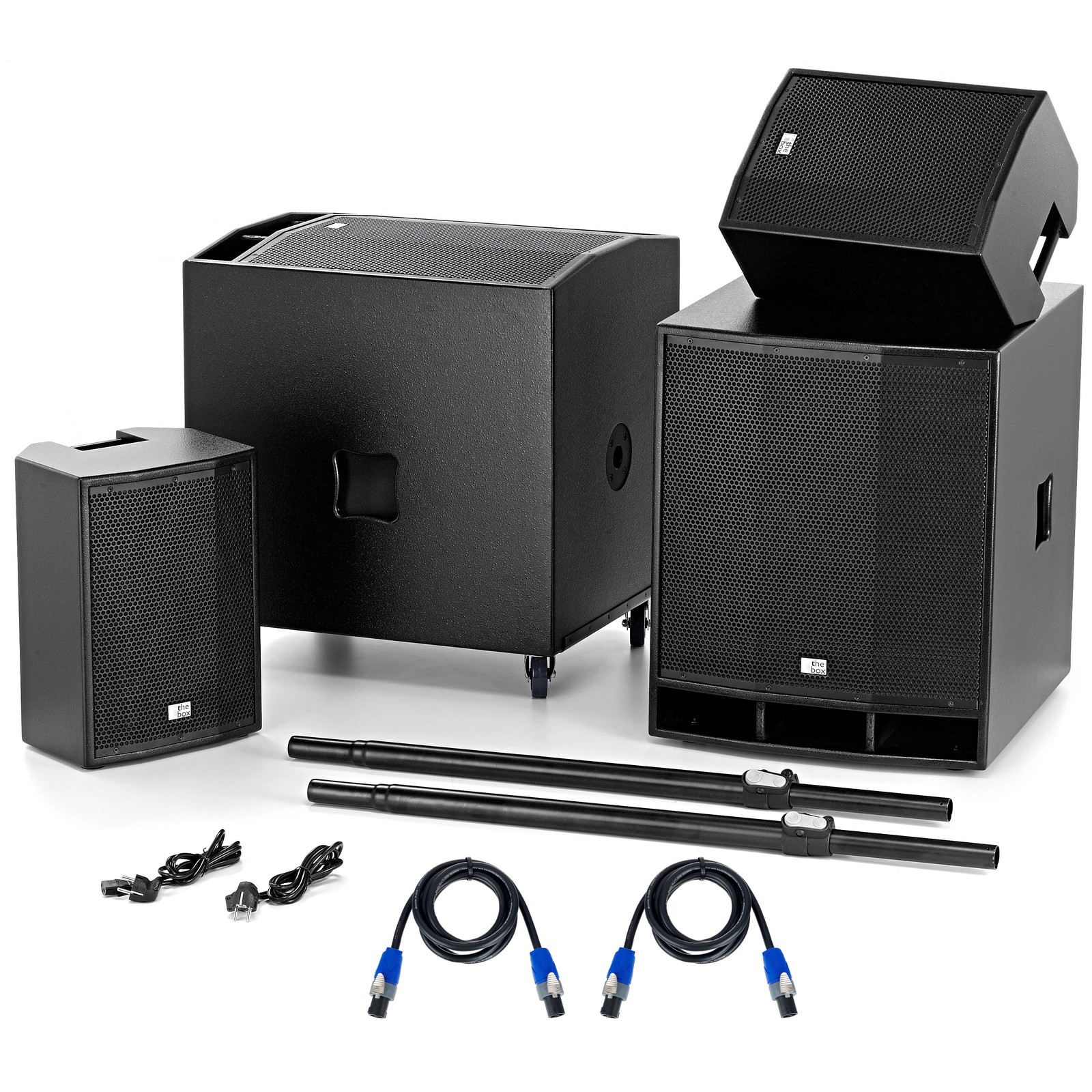 Mit dem CL110/118 MK II Power Bundle bietet the box ein PA-Komplettset, bestehend aus zwei CL 118 MK II Subwoofern und zwei CL 110 MK II Fullrangelautsprechern. Den zentralen Punkt des Systems bilden dabei die aktiven Basslautsprecher, in deren Gehäuse die Endstufe zur Versorgung des eigenen 18“ Lautsprechers und auch der passiven Satellitenlautsprecher untergebracht ist. Diese mit einem 10“ Lautsprecher und einem 1“ Kompressionstreiber für den Hochtonbereich bestückten Boxen haben einen Frequenzgang von 90 Hz bis 19 kHz, der von den CL 118 bis hinab auf 33 Hz erweitert wird. Neben den Lautsprechern beinhaltet das Set noch Lautsprecherkabel und zwei Distanzstangen von Millenium, um die Satelliten direkt auf den Subwoofern zu montieren.