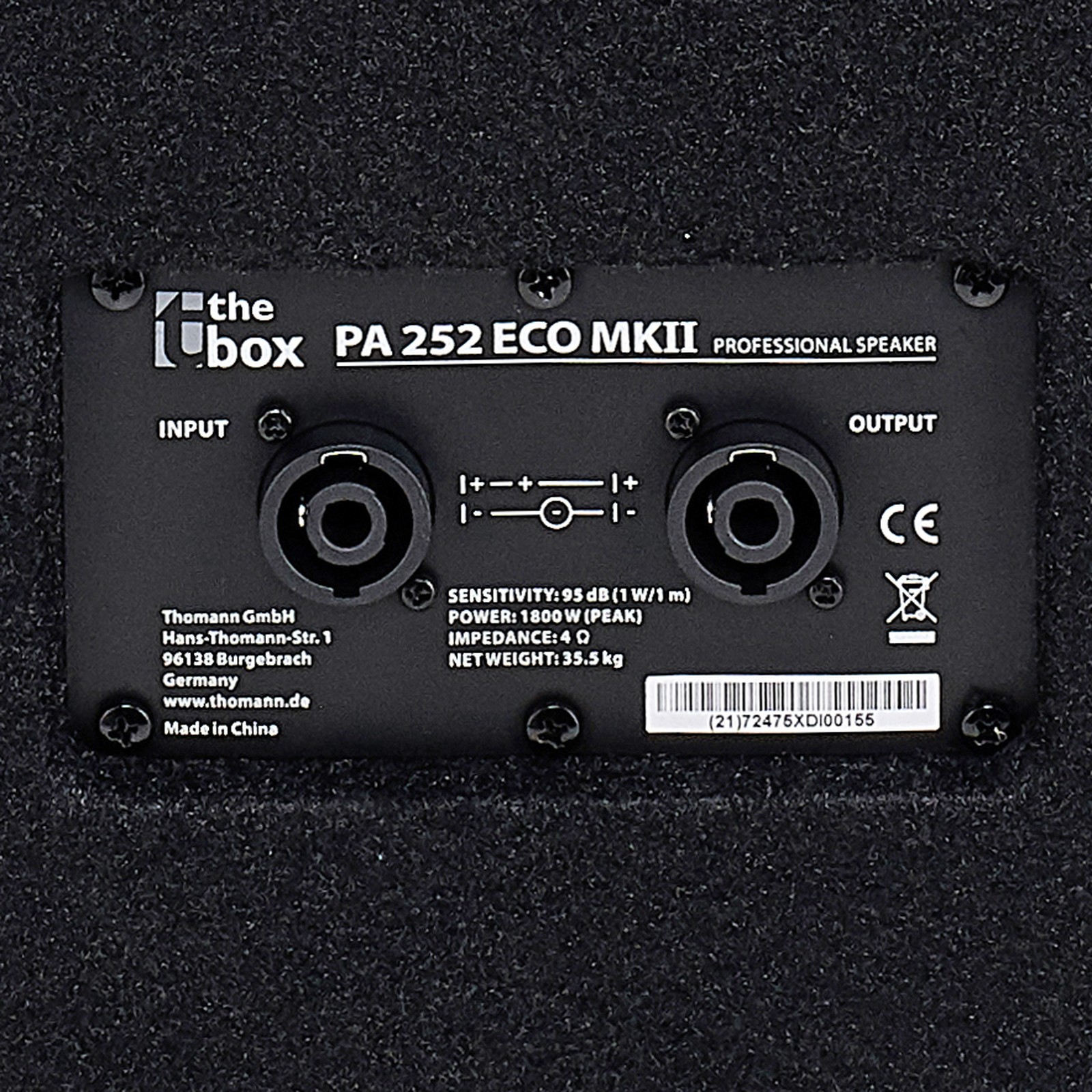 Der passive Fullrange-Lautsprecher the box PA 252 ECO MKII tritt mit gleich zwei 15"-Speakern und einem 1"-angetriebenen Hochtonhorn auf. Mit ihnen bildet er Sound im Frequenzbereich von 45 Hz bis 15 kHz ab. Belastbar bis 1.800 W Peak kann er auch an mittelgroßen Endstufen betrieben werden. Der Lautsprecher ist eine schnörkellose FOH-Wahl, um auf kleinen Bühnen mit wenig Budget für ordentlichen Sounddruck von maximal 121 dB SPL zu sorgen. Sein Eingang mit Kombibuchse für Klinken- und Speaker-Twist-Stecker macht ihn zu einem flexiblen Partner. Dabei ist das Klangbild dieses Budget-Speakers stets ausgewogen und differenziert.