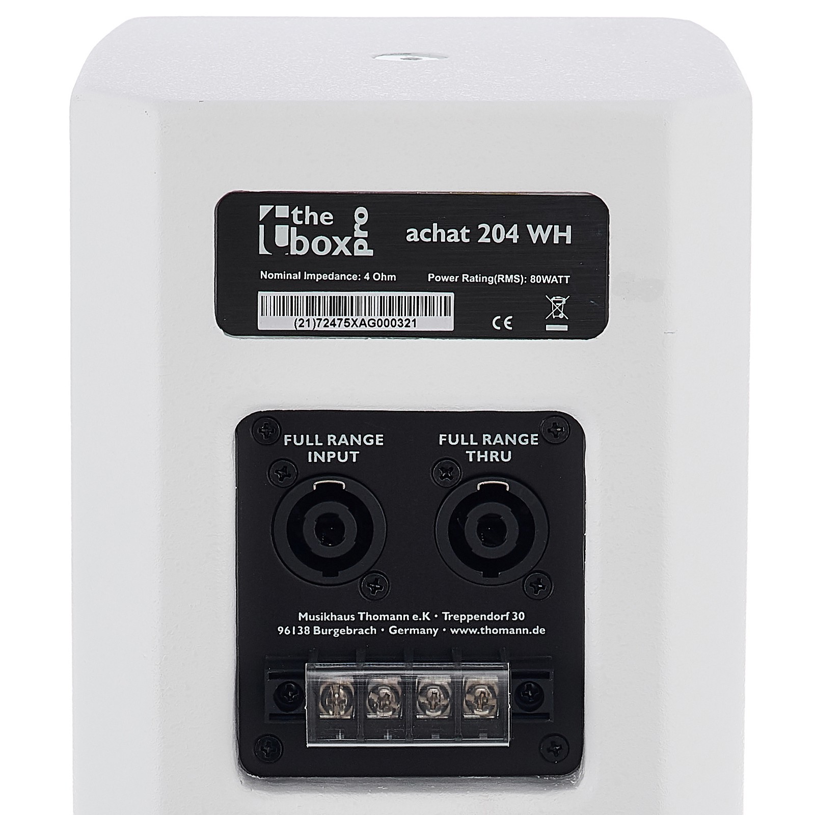 Das the box pro Achat 108 Sub A WH Bundle ist ein kleines, weißes Lautsprecherset mit einem 8“-Subwoofer der Thomann-Hausmarke the box pro und zeichnet sich durch ein sehr gutes Preis-Leistungs-Verhältnis aus. Der komplett weiße Look eignet sich hervorragend zur Beschallung in taghellen Räumlichkeiten und ist angenehm unauffällig in weißen Eventlocations. Nach dem Auspacken des Subs entdeckt man ein 360 mm breites, 300 mm hohes und 435 mm tiefes Gehäuse, in welches ein Tieftöner mit einem 8 Zoll-Basslautsprecher eingebaut ist. Die eingebaute Endstufe benötigt eine 230 Volt-Versorgungsspannung. Die beiden Fullrange-Lautsprecher enthalten je zwei 4 Zoll-Basslautsprecher und einen 1 Zoll-Gewebehochtöner.