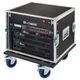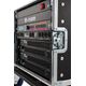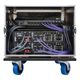 Das Rack ist solide verarbeitet und für den mobilen Einsatz geeignet. Es besteht aus einem robusten 19”-Flightcase mit Butterfly-Verschlüssen, Rollen und Rackschienen – ideal für Touring und schnelle Auf- und Abbauzeiten. Die Verkabelung ist intern sauber durchgeführt.
