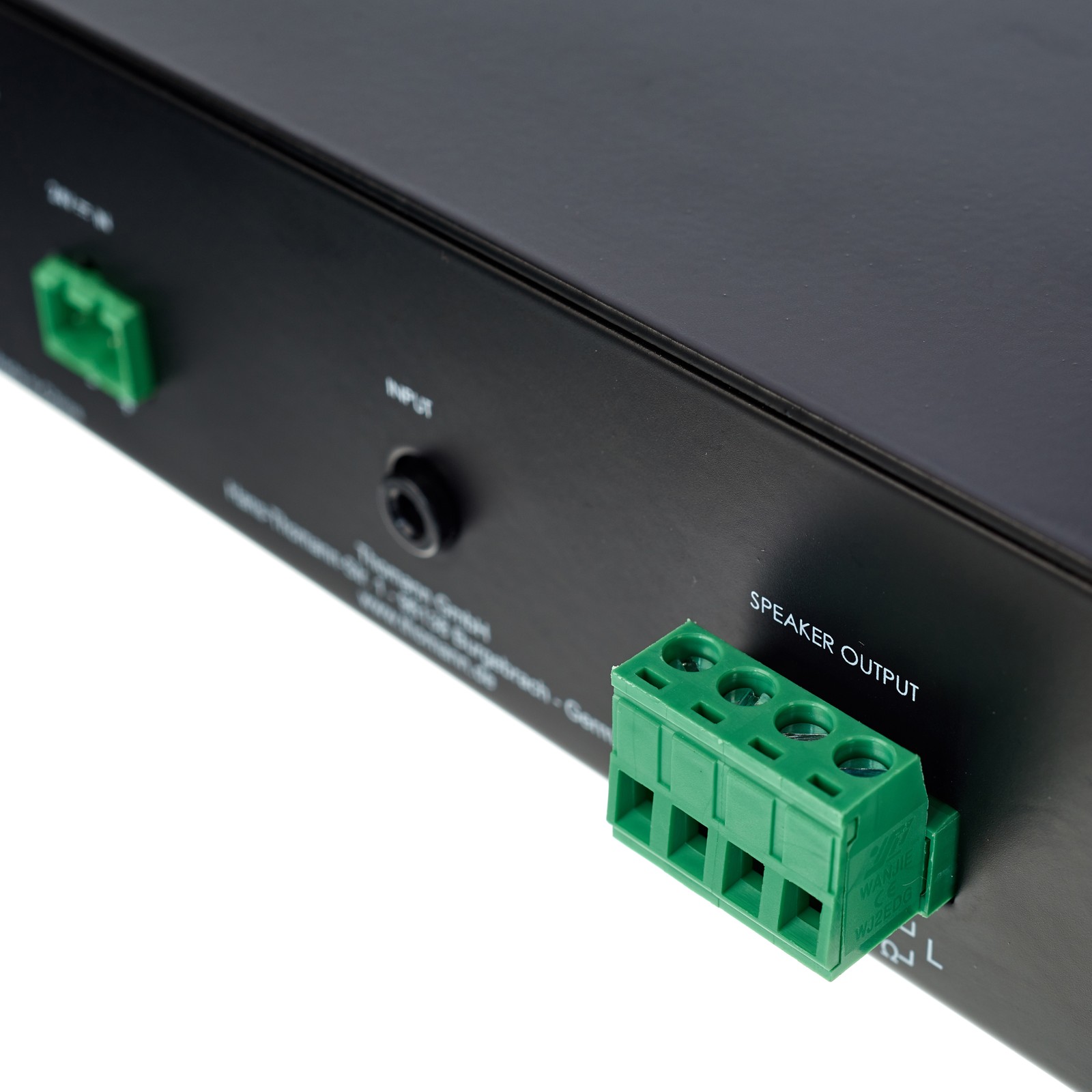 Klingt ein kleiner Lautsprecher kraftvoll, ist aber weit und breit kein Verstärker zu sehen, könnte vielleicht der TA50 dahinterstecken. Der winzige Amp der Thomann-Eigenmarke the t.amp verstärkt das Signal einer Linequelle zur Wiedergabe durch passive Speaker. Er eignet sich dank einiger solider Features bestens zur Festinstallation, hat einen zuschaltbaren Limiter und überrascht mit einem praktischen Standby-Modus. Wer Musik aus nicht mehr als zwei kleinen Lautsprechern oder einem etwas üppiger dimensionierten Speaker mit doppelter Leistung zu Gehör bringen möchte, wird an der preislichen Attraktivität dieses Amps kaum vorbeikommen.