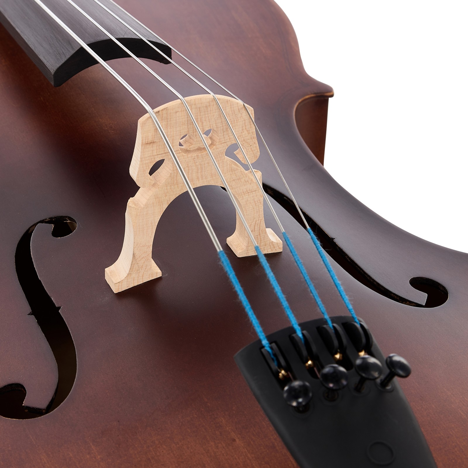 Das Thomann Classic Celloset ist eines der preiswertesten Cellosets, die derzeit auf dem Markt erhältlich sind. Der Hals des Instruments besteht aus hartem und widerstandsfähigen Ahornholz und ist schwarz gebeizt, um den traditionellen Cello-Look zu bewahren. Decke und Boden des Cellos werden aus Sperrholz gefertigt. Die vier Wirbel bestehen aus Jujube und stellen somit einen Ersatz zu den sonst häufig verwendeten Tropenhölzern dar, wodurch die Regenwald-Ressourcen geschont werden und erhalten bleiben. Die Saiten stammen aus der Fertigung des dänischen Unternehmens Jargar. Die Young Talent Cellosaiten sind klanglich flexibel und daher für alle Soundvorstellungen eine gute Voraussetzung.