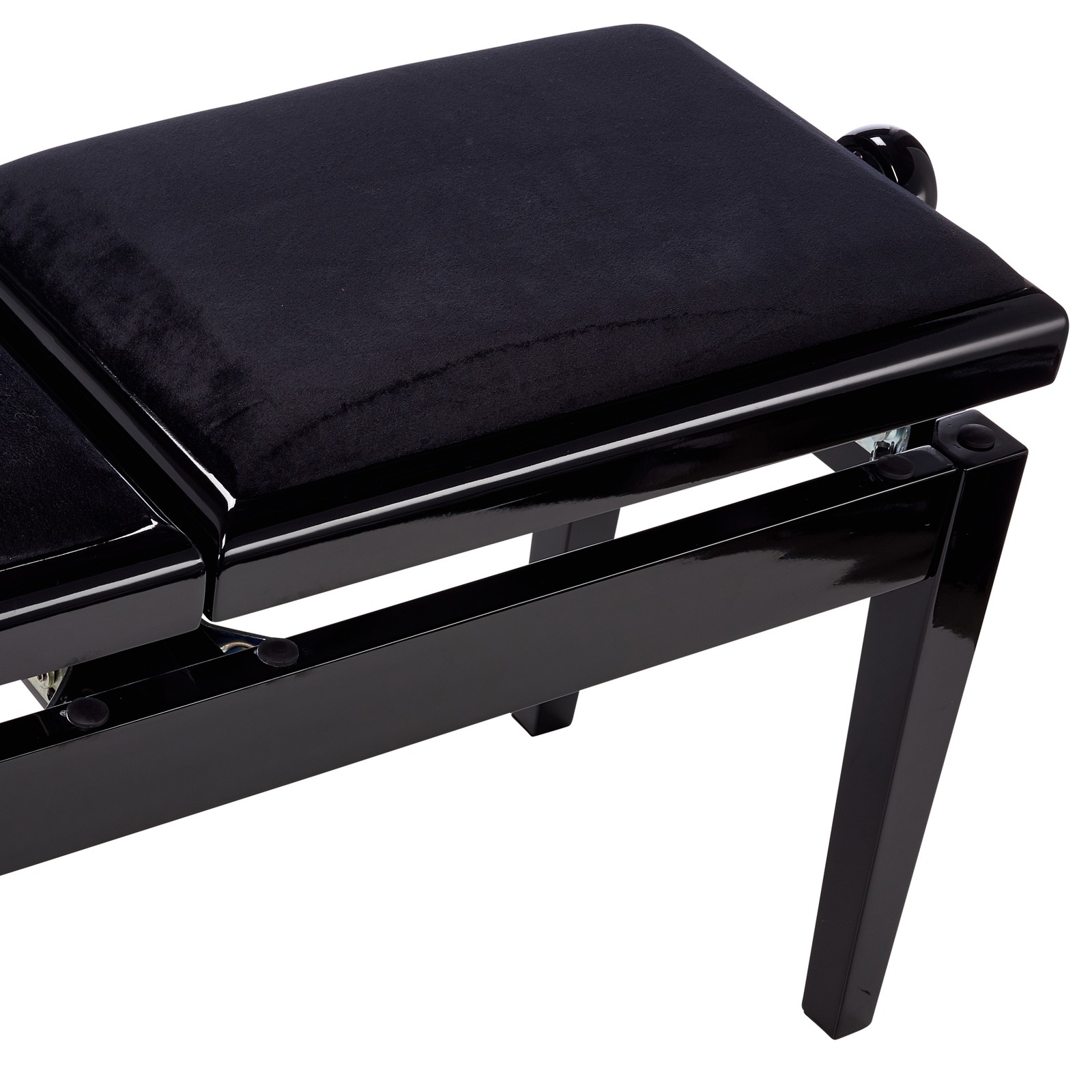 Der Doppelsitzer KB-247 ist in zweierlei Hinsicht einzigartig. Er ist ein Preisbrecher und die Sitzhöhen können separat eingestellt werden. Das auf der Einzelbank KB-47 aufbauende Mittelklassemodell kommt in seiner klassischen Form auf geradlinigen, nach unten schlanker werdenden Beinen daher. Im Vergleich zur KB-47 hat es kleinere Sitzflächen und ist in geringerem Umfang höhenverstellbar. Im Gegensatz zur extrahohen KB-57 ist diese Bank im üblichen Bereich variabel. Der luftdurchlässige Stoffbezug bietet selbst während langer Sessions angenehmen Komfort. Im Vergleich zur Budgetbank KB-15 sitzt man bei dem in vier Gestellfarben erhältlichen Doppel ebenfalls auf etwas kleineren Flächen, die aber mit feinerem Velours überzogen sind, gehalten von aufwändigeren Hebewerken. Das elegant polierte Schwarz der KB-247BP passt insbesondere zu ebensolchen Flügeln oder Klavieren und zu einer Inneneinrichtung mit Lackoberfläche. Schmutzunempfindlich fügt sich die Farbe in das vorhandene Interieur ein, sorgt für glanzvolle Auftritte und vor allem: Sie passt zu jedem Outfit.