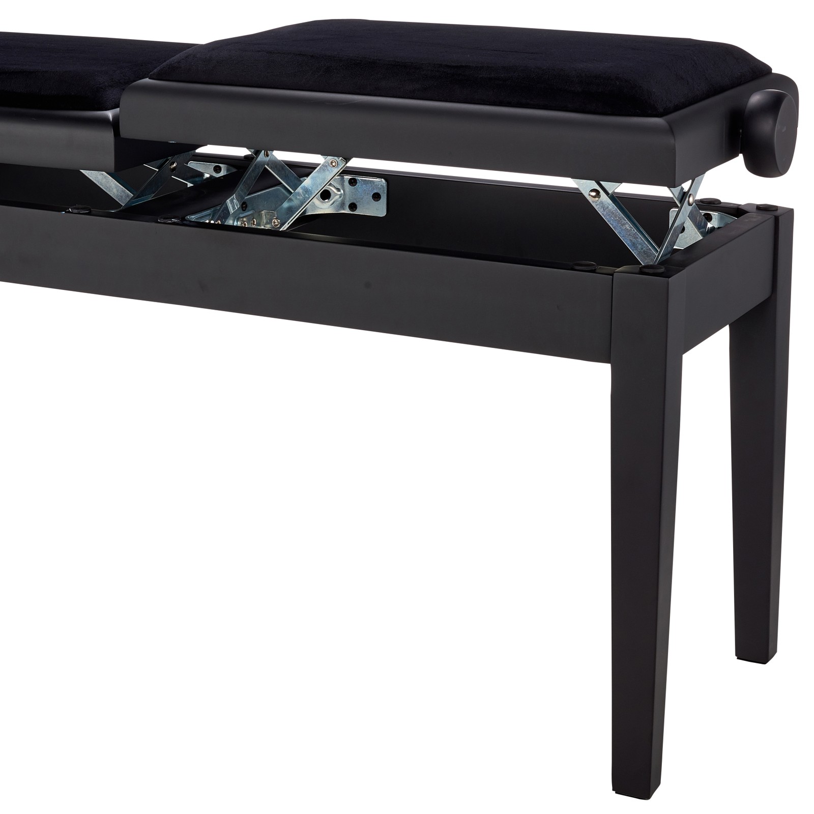 Wer zu zweit ein Tasteninstrument spielt, erwirbt mit der KB-247 eine Bank im zeitlosen Format, deren budgetschonender Preis nicht nur Einsteiger erfreut. Ob zu Flügel oder Klavier – das reduzierte Design passt, wobei der Doppelsitzer optisch gleichmäßiger wirkt als zwei nebeneinander aufgestellte Einzelbänke. Ob für Kinder im Wachstum, eine Familie unterschiedlich großer Hobbypianisten oder einfach nur zwei Musiker unterschiedlicher Größe – im Handumdrehen ist jeder Sitz auf die optimale Höhe gebracht. Die Stabilität der Mechanik bietet die Performance einer guten Mittelklasse. Wer Wert darauf legt, dass die Farbe der Klavierbank mit der Einrichtung matcht, findet in der Farbwelt der KB-247 praktisch zu jedem Interieur den passenden Ton.