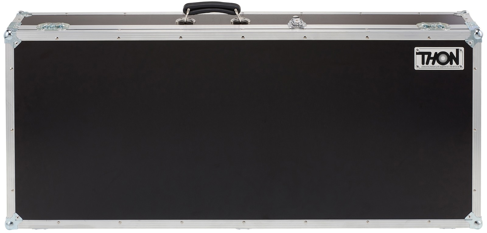 Gefertigt aus 7mm-Multiplex und an den neuralgischen Punkten mit 22x22mm Aluminiumkanten sowie soliden Stahlkugelecken verstärkt, widersteht das Thon Case Dreadnought den Belastungen des Tourlebens. Zwei kleine, gefederte Butterfly-Verschlüsse halten den Deckel sicher geschlossen, ein zusätzliches Kofferschloss schützt den Inhalt vor neugierigen Fingern. Der Kunstledergriff ist bewusst außerhalb des Schwerpunktes angebracht, damit das Case beim Tragen leicht schräg hängt und das Begehen von Treppen deutlich erleichtert. Das Gewicht von rund 12,6kg unterstreicht die Stabilität und steht zugleich für die Wertigkeit, die im entscheidenden Moment den Unterschied macht.