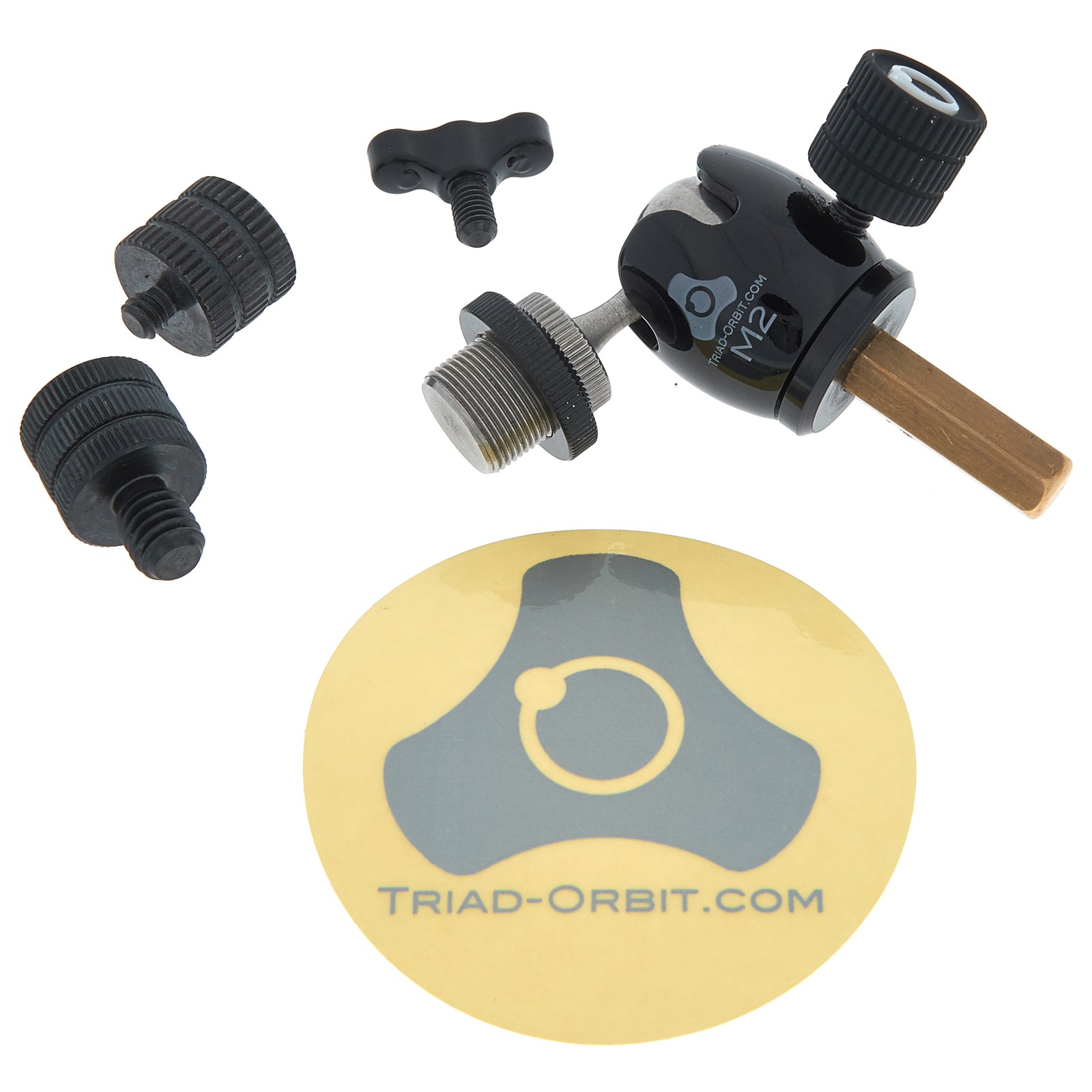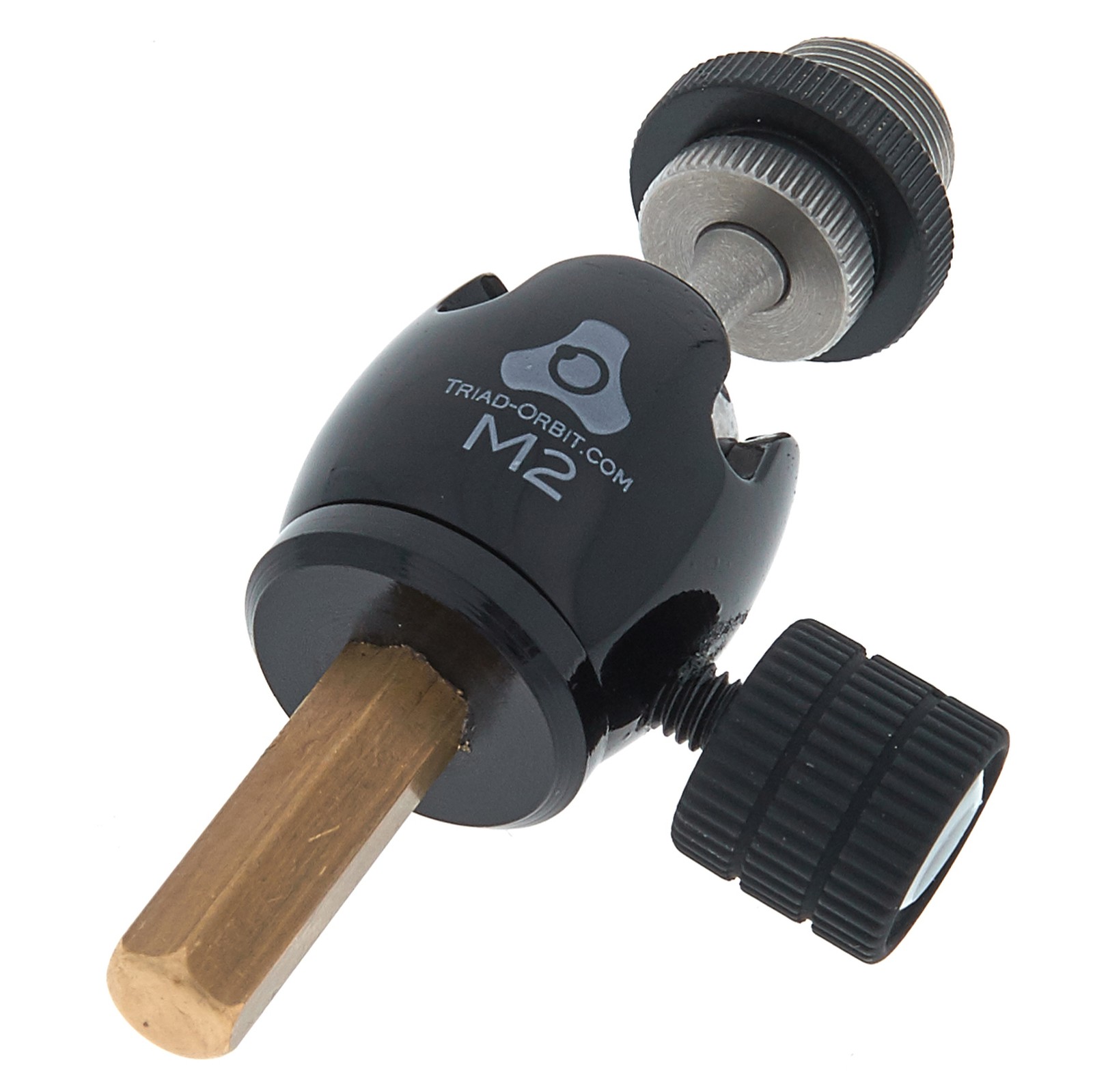 Mit dem Adapter M2 lassen sich Mikrofone, Kameras und Scheinwerfer präzise per Kugeldrehgelenk ausrichten. Der M2 passt an Schnellwechsel-Adapter der IO-Reihe, bei Triad-Orbit-Stativen wie den Modellen T1, T2 und T3. Das mit einer Pulverbeschichtung in schwarzer Farbe überzogene Kugelgelenkgehäuse ist robust genug für Tourbetrieb und Dauereinsatz. Zwei Reduziergewinde-Adapter für die Befestigung von Mikrofonklemmen und -spinnen liegen dem Adapter gleich bei. Durch das um 360 Grad drehbare und 220 Grad schwenkbare Kugelgelenk, das per Arretierschraube festgestellt werden kann, lassen sich Mikrofone in nahezu jeder Position optimal justieren.