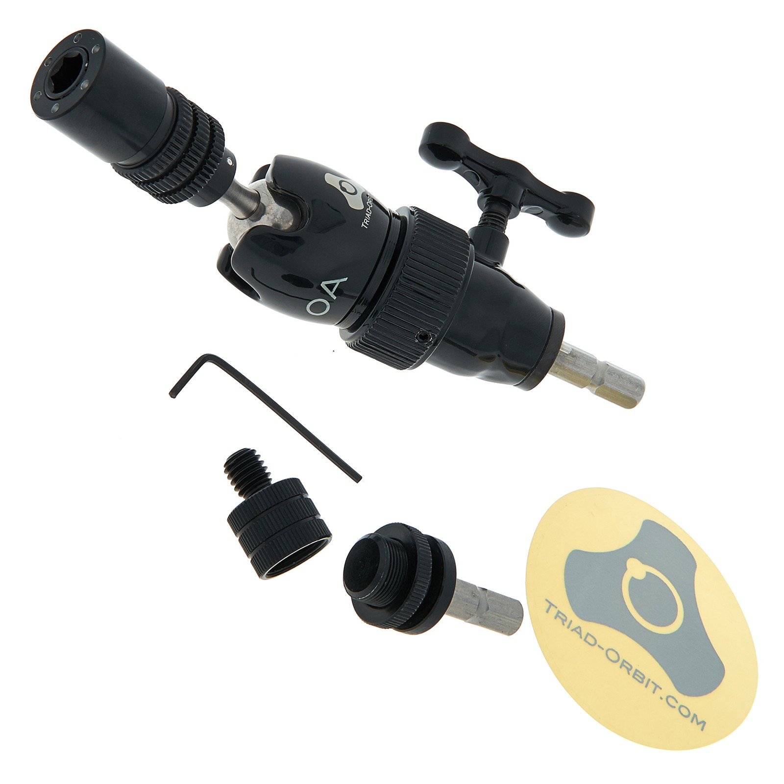 Mit der Schnellwechselkupplung OA V2 lassen sich Mikrofone, Kameras und Scheinwerfer präzise per Kugeldrehgelenk ausrichten. Die vorhandene Schnellwechselkupplung sorgt für schnelles Verbinden mit Triad-Orbit-Stativen der IO-Reihe, wie den Modellen T1, T2 und T3. Das mit einer Pulverbeschichtung in schwarzer Farbe überzogene Kugelgelenkgehäuse ist robust genug für Tourbetrieb und Dauereinsatz. Ein Reduziergewinde-Adapter für die Befestigung von Mikrofonklemmen und -spinnen liegt dem Adapter gleich bei. Durch das um 360 Grad drehbare und 230 Grad schwenkbare Kugelgelenk, das per Arretierschraube festgestellt werden kann, lassen sich Mikrofone in nahezu jeder Position optimal justieren.