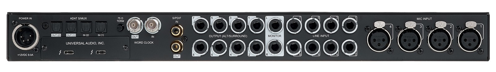 B-Stock, Universal Audio Apollo x8 Heritage Edition; 18 x 24 Thunderbolt 3 Audiointerface; 24-bit/192 kHz; 6-Kern SHARC DSP für internes UAD Echtzeit-Processing; 4 Unison-Mikrofonvorverstärker; Anschlüsse: 4x Mikrofon-Eingang XLR, 2x Hi-Z Eingang 6.3 mm Klinke, 8x Line-Eingang 6.3 mm Klinke, 2x Monitor-Ausgang 6.3 mm Klinke, 8x Line-Ausgang 6.3 mm Klinke, S/PDIF Ein- und Ausgang coaxial, 2x ADAT Ein- und Ausgang, Word Clock Ein- und Ausgang BNC, 2x Stereo Kopfhöreranschluss 6.3 mm Klinke, 2x Thunderbolt 3; +48V Phantomspeisung; Pad; Low-cut; Phase Reverse; Schalter für Monitor-Umschaltung; mit Dim oder Mono belegbarer Funktionstaster; LED-Meter; integriertes Talkback-Mikrofon; inkl. externes Netzteil; Unterstützung von Surround-Formaten bis zu 7.1 mit Lautsprecherkalibrierung und Downmix; Dual Crystal Clocking für jitterarme Umgebung und reine, artefaktfreie Aufnahmen sowie stabile Stereoabbildung; für Mac/Windows; kompatibel zu Thunderbolt 2 mit optionalen Thunderbolt 2 zu 3 Adapter (nicht im Lieferumfang enthalten); bis zu 4 Apollos mit Thunderbolt Anschluss kaskadierbar; Bauform: 19" 1HE; inkl. Software Bundle Rackmount Heritage Edition & Realtime Analog Classics Plus, Versandrückläufer mit voller Garantie ggf. mit leichten Gebrauchsspuren