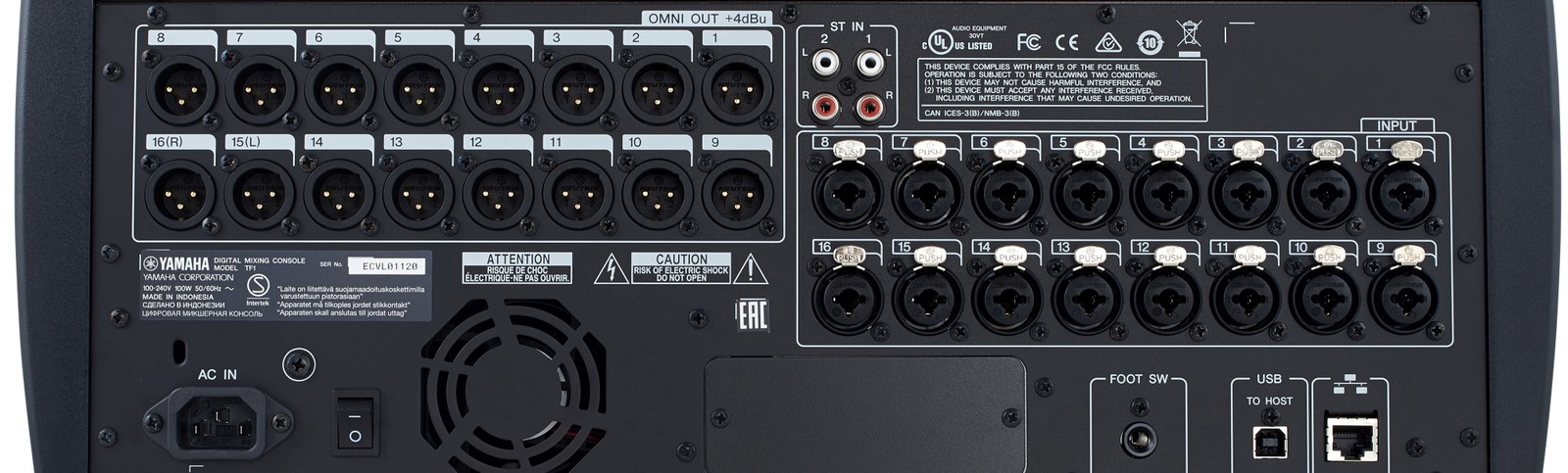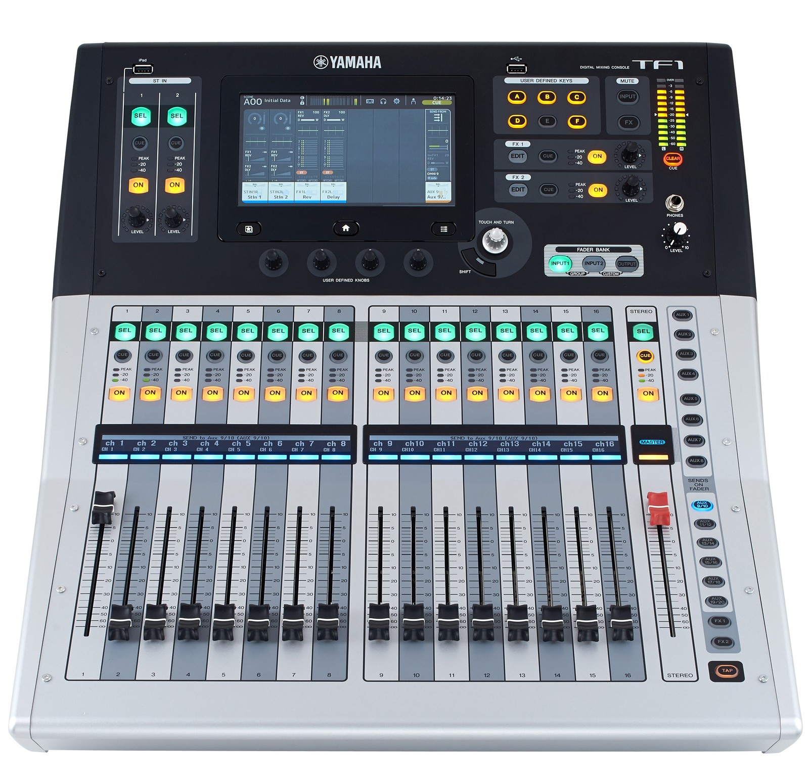 Das Yamaha TF-1 ist die kompakteste Variante der TF-Serie und bietet dennoch erstaunliche Möglichkeiten. Das Pult kommt mit 16 analogen Eingängen (Klinke/XLR-Kombibuchsen), die mit recallfähigen D-PRE Vorverstärkern von Yamaha ausgestattet sind. Nach einer Erweiterung über eine optionale Dante-Karte sind bis zu 40 Mix-Kanäle möglich. Die 16 Omni-Outputs können in Verbindung mit den 20 internen Bussen für umfangreiches Monitoring, mehrere Lautsprecher-Sets oder Outboard-Equipment genutzt werden. In Hinblick auf interne Effekte stehen je ein EQ, Gate und Kompressor pro Kanal sowie acht weitere FX-Prozessoren (zwei als globale Sends) im Angebot, die auf Yamahas erfolgreichen SPX-Effekten basieren. Ein internes USB-Audio-Interface ermöglicht das Streaming von jeweils bis zu 34 Kanälen in beide Richtungen und erlaubt sowohl Multitrack-Mitschnitte als auch virtuelle Soundchecks.