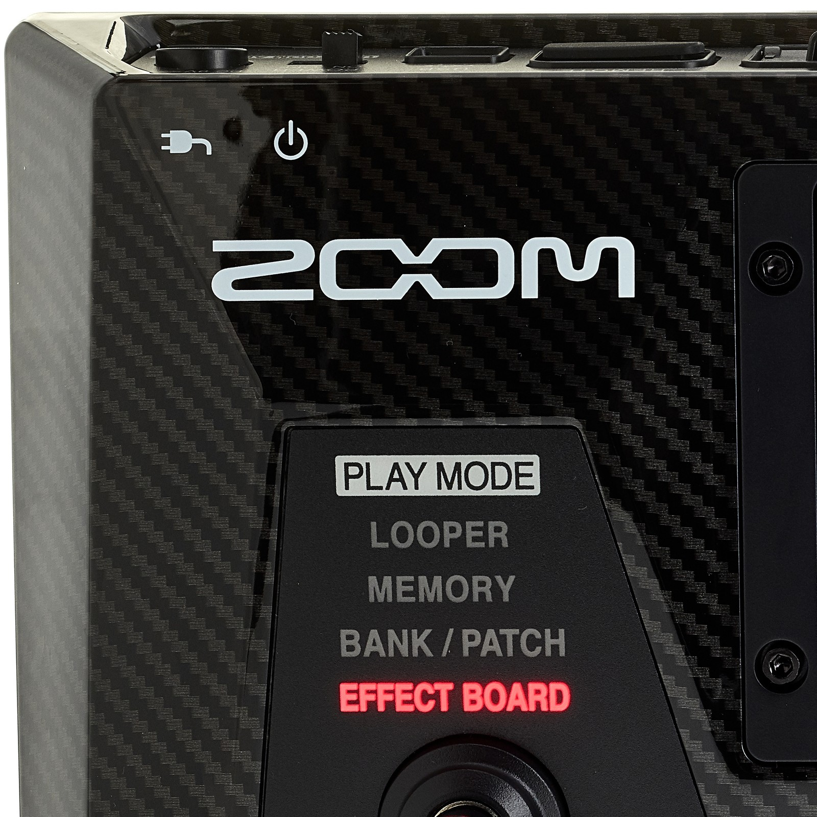 Das Zoom G6 bietet vier Play-Modi mit je eigener Darstellung im Touchscreen. Praktischerweise werden wichtige Funktionen der Modi automatisch den Fußschaltern zugewiesen. So können Gitarristen im Handumdrehen durch die Parameter navigieren. Im Bank/Patch-Modus lässt sich schnell durch die verfügbaren Effekt-Patches browsen und im Memory-Modus lassen sich diese Patches komfortabel modifizieren. Der Modus "Effect Board" stellt die Effektkette im Display dar und ermöglicht das Ein/Ausschalten enthaltener Patch-Effekte per Fußschalter. Im Looper-Modus können mehrere Sound-Layer addiert und auf Speicherkarte aufgezeichnet werden. Um Effekte und Patches zu updaten, ist das G6 kompatibel mit der kostenlosen Zoom-Software "Guitar Lab". Und mit der App "Handy Guitar Lab" ist auch die drahtlose Steuerung über einen optional erhältlichen Bluetooth-Adapter möglich (Artikel-Nr. 423971).