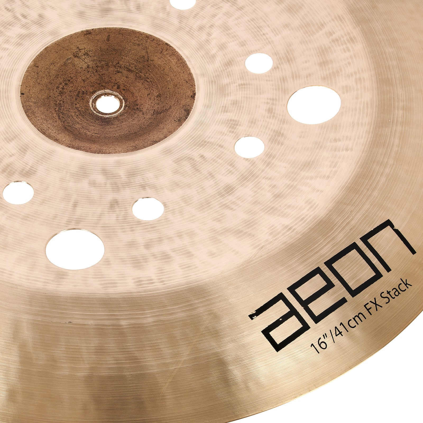 Das breit gefächerte Programm der Aeon-Serie umfasst diverse Ride- und Crashbecken jeweils in leichter und mittelschwerer Ausführung, zwei verschieden große Hi-Hats sowie eine Reihe von Effektbecken. Damit ist die ganze Bandbreite abgedeckt, die man als Drummer heutzutage braucht. Während sich die Light Rides und die Thin Crashes überall dort wohlfühlen, wo auch bei leisen Anschlägen das volle Klangpotenzial zur Entfaltung kommen soll, können die regulären Versionen auch kräftigere Schläge vertragen und sind damit durchaus auch tauglich für Rockmusik, sofern sie nicht allzu laut ist. Das 14“/16“ Aeon FX Stack beinhaltet zwei Becken, die in Kombination einen kurzen, fauchigen, trashigen Sound erzeugen, der durch unterschiedlichen Anpressdruck noch variiert werden kann. Der Sound dieses Stacks lässt sich als Special Effect in den verschiedensten Settings einsetzen. Verwendet man die Cymbals einzeln, ergeben sich noch weitere Klangoptionen.