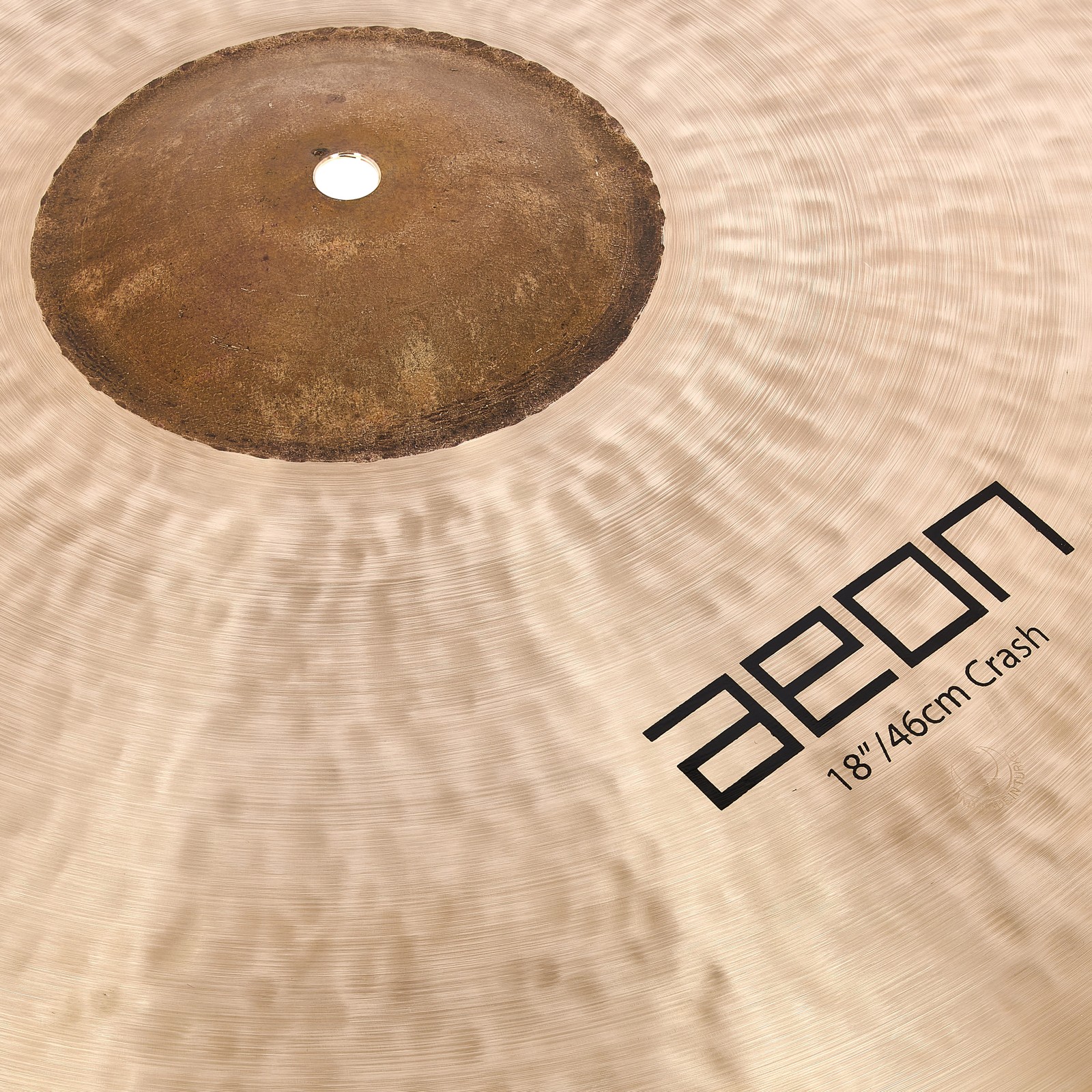 Das breit gefächerte Programm der Aeon-Serie umfasst diverse Ride- und Crashbecken jeweils in leichter und mittelschwerer Ausführung, zwei verschieden große Hi-Hats sowie eine Reihe von Effektbecken. Damit ist die ganze Bandbreite abgedeckt, die man als Drummer heutzutage braucht. Während sich die Light Rides und die Thin Crashes überall dort wohlfühlen, wo auch bei leisen Anschlägen das volle Klangpotenzial zur Entfaltung kommen soll, können die regulären Versionen auch kräftigere Schläge vertragen und sind damit durchaus auch tauglich für Rockmusik, sofern sie nicht allzu laut ist. Das 18“ Aeon Crash verfügt über einen warmen Sound mit feinen Höhen und eine große dynamische Bandbreite. Aufgrund dieser Attribute ist von Rock und Pop über Blues, Soul und Funk bis hin zu Latin Music mit diesem Becken alles möglich.