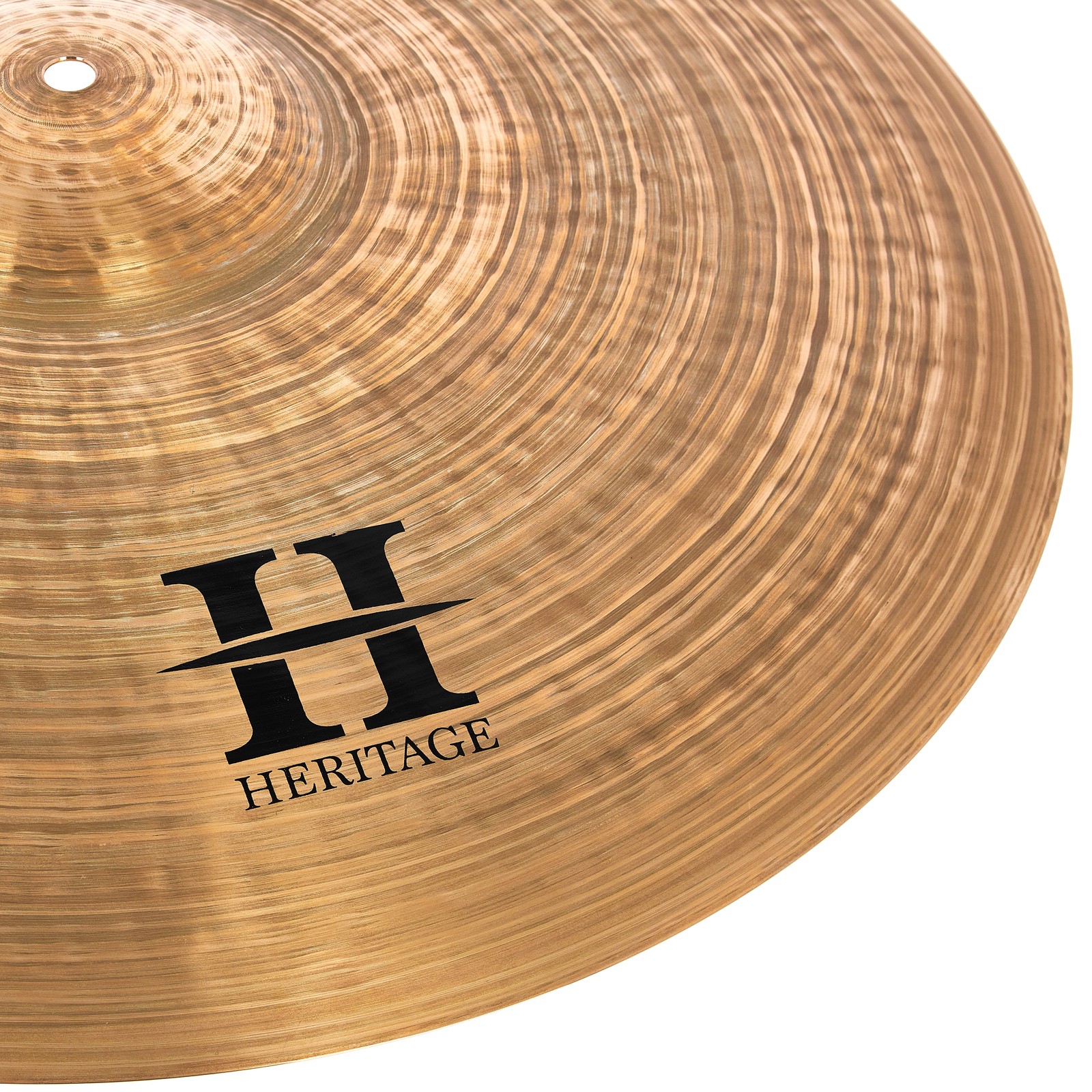 Die Becken aus der Heritage-Serie werden aus einer B20-Bronzelegierung gefertigt und bestehen somit aus 80% Kupfer und 20% Zinn. Mit ihrem verhältnismäßig geringem Gewicht lassen sie sich in die Medium-Thin- bis Thin-Kategorie einordnen. Der Klang zeichnet sich durch eine ausgewogene Mischung aus einem warmen Grundton und einem hellen und hochgradig definierten Stockanschlag sowie durch eine blitzschnelle Ansprache aus. So lässt sich das 20“-Heritage-Crash schon durch einfaches Anschlagen mit der Hand dazu bringen, einen reichhaltigen Sound zu entfalten.