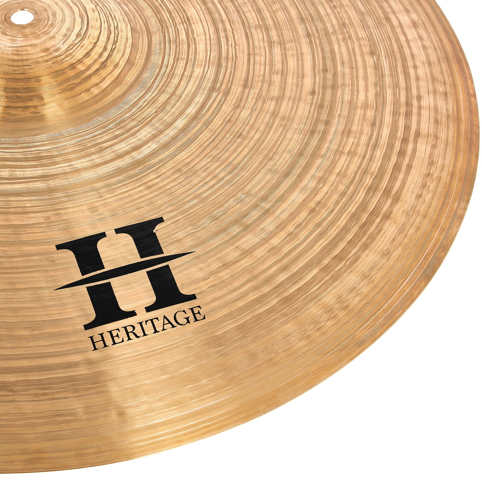 Die Becken aus der Heritage-Serie werden aus einer B20-Bronzelegierung gefertigt und bestehen somit aus 80% Kupfer und 20% Zinn. Mit ihrem verhältnismäßig geringem Gewicht lassen sie sich in die Medium-Thin- bis Thin-Kategorie einordnen. Der Klang der Heritage-Rides zeichnet sich durch einen hellen und hochgradig definierten Stockanschlag, einen gut integrierten, darunterliegenden Wash und eine klar abgesetzte Bell aus. Dank der schnellen Ansprache lässt sich das 20“-Heritage-Ride auch sehr gut zum Erzeugen von Crash-Sounds verwenden.