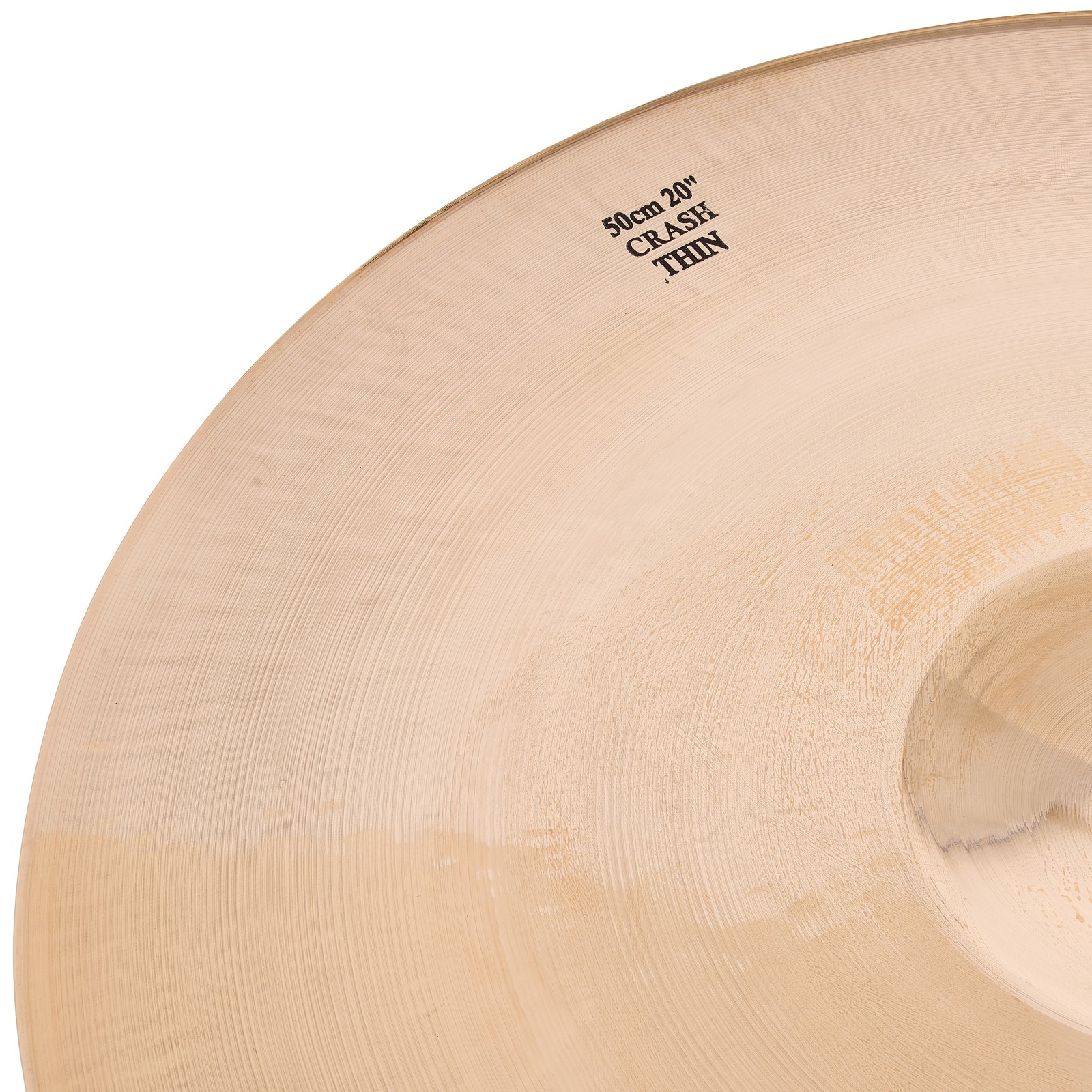 Während die komplett abgedrehte und hochglanzpolierte Unterseite der Q-Becken der populären Zultan Rock Beat Serie ähnelt, präsentiert sich die Oberseite absolut eigenständig. Der mit tiefen Hammerschlägen versehene Rand ist - wie auch die Kuppe - nicht abgedreht und bildet mit seinem rohen, erdigen Look einen starken Kontrast zum hochglänzenden mittleren Bereich. Die manuelle Bearbeitung durch erfahrene türkische Beckenschmiede macht jedes Becken zu einem echten Unikat. Das 20“ Thin Crash bietet eine sensible Ansprache und verfügt über einen dynamischen, vollen Klang mit dunklem Charakter.