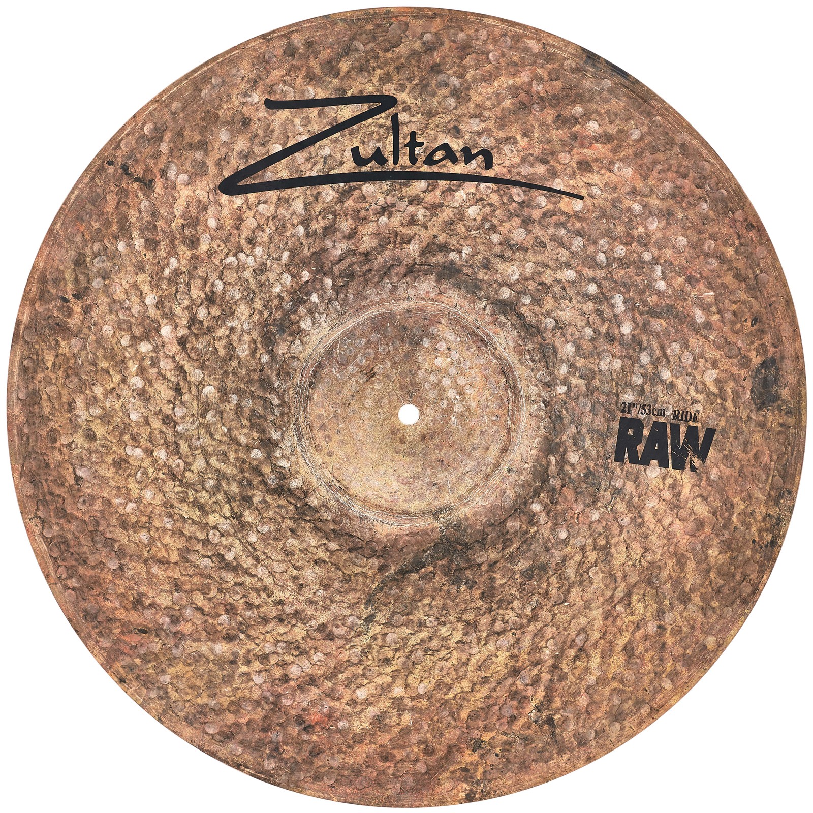 Jedes Becken der Zultan-Raw-Serie besteht aus 80% Kupfer und 20% Zinn und wird von Hand gehämmert. Somit sind die Becken Unikate, wobei aber bei der finalen klanglichen Abstimmung darauf geachtet wird, dass die vorgegebenen Toleranzen eingehalten werden. Der Verzicht auf das Abdrehen der Cymbals resultiert einerseits in der speziellen Optik, andererseits in einem kontrollierten, leicht höhenreduzierten Sound, der gekennzeichnet ist von einem relativ kurzen Sustain. Aufgrund dieser besonderen Klangeigenschaften besteht keine Gefahr, dass die Becken der Raw-Serie das musikalische Geschehen allzu sehr dominieren. Das 21“-Ride bietet einen flexibel einsetzbaren, musikalischen, kompakten Sound mit reduzierten Obertönen.